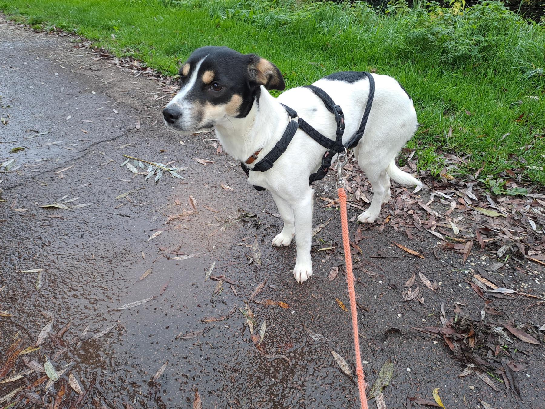 Kan apart of samen met zusje Julie geplaatst worden. Zachtaardig, rustig, aanhankelijk, niet luidruchtig, goed aan de riem met een beetje onzekerheid nog. Goed met honden. Sinds ze volwassen is zijn zij en haar broers/zusjes niet meer goed met katten. Poept en plast tijdens de wandelingen, maar werkt nog aan zindelijkheidstraining
