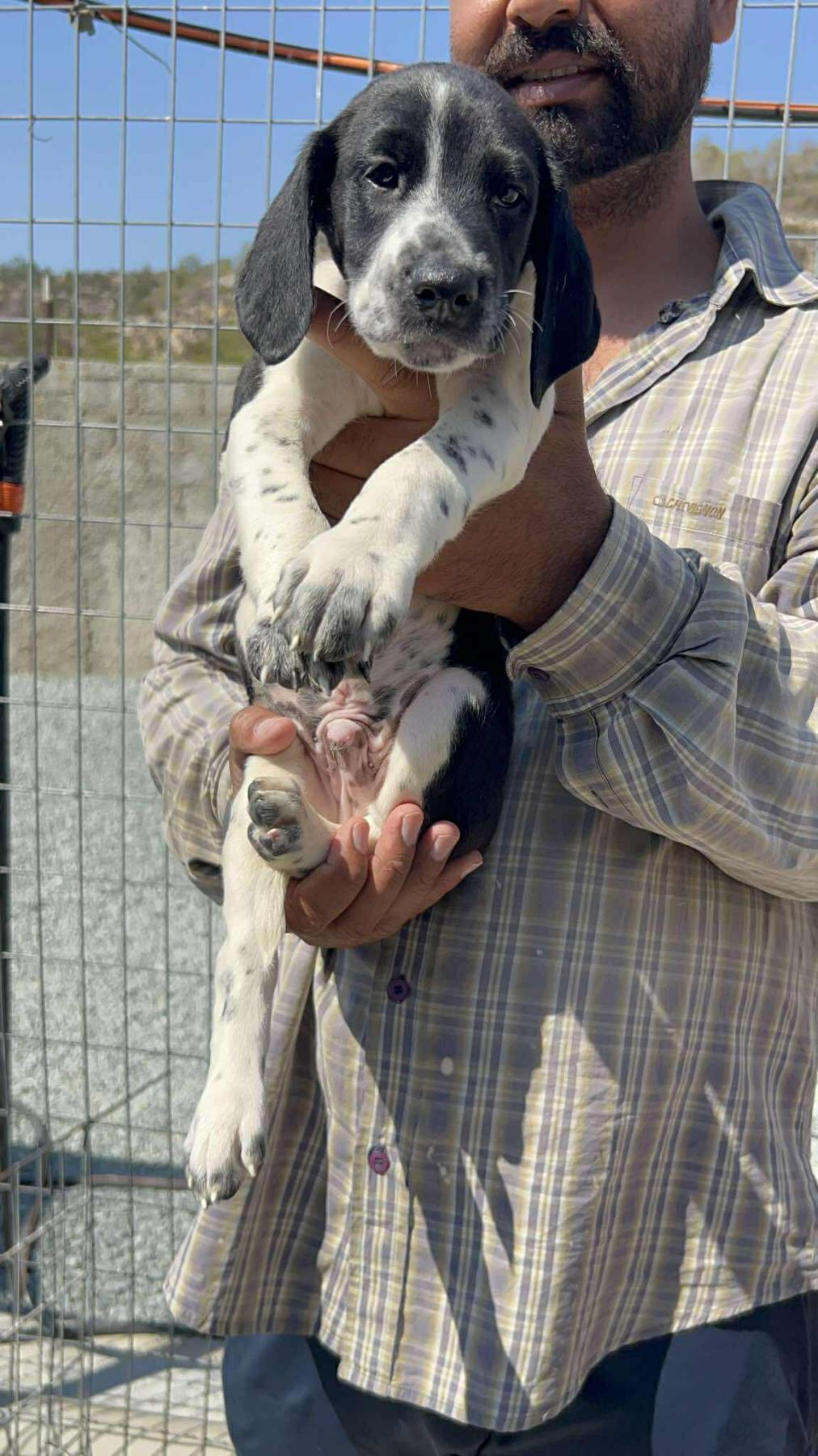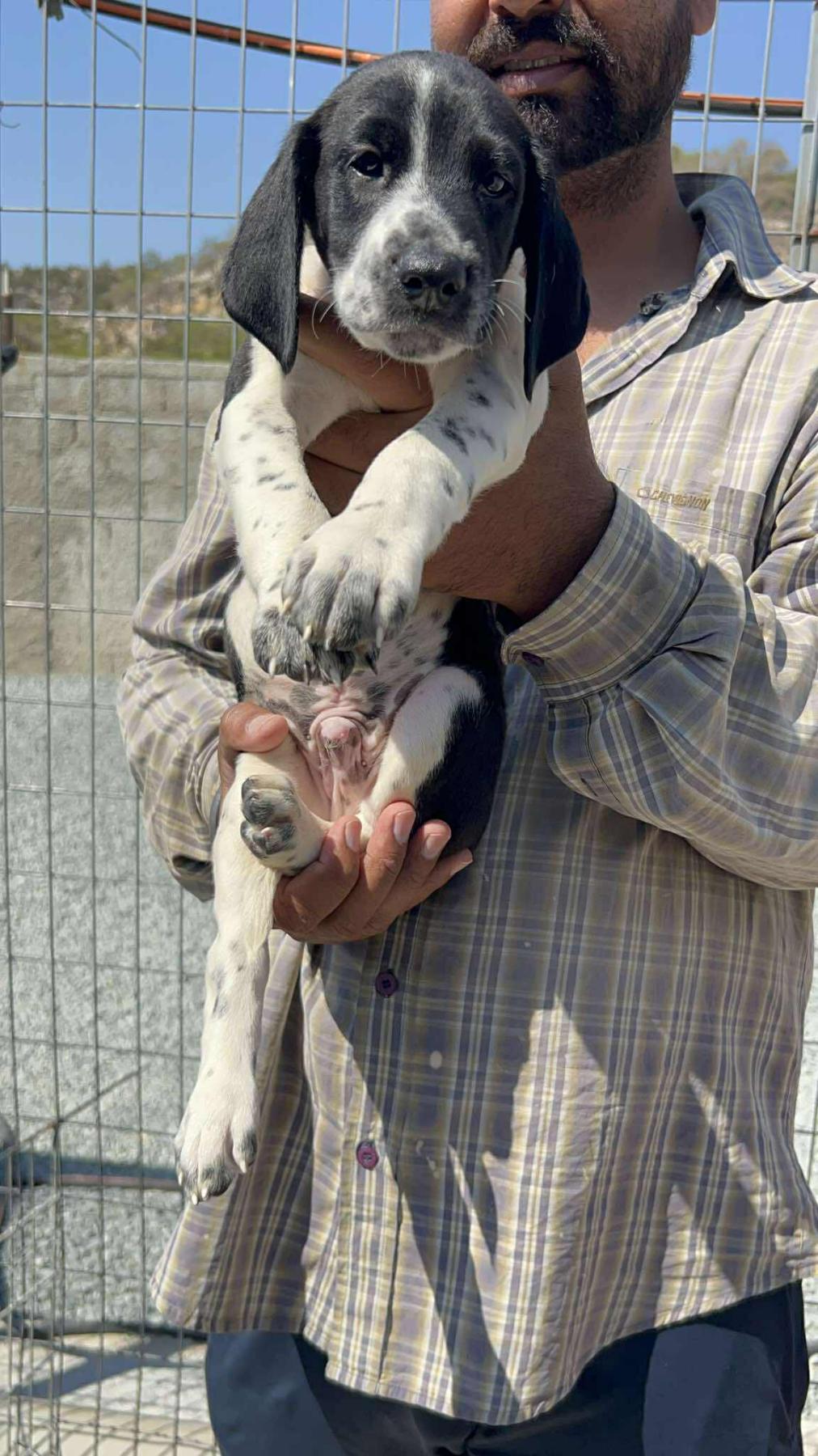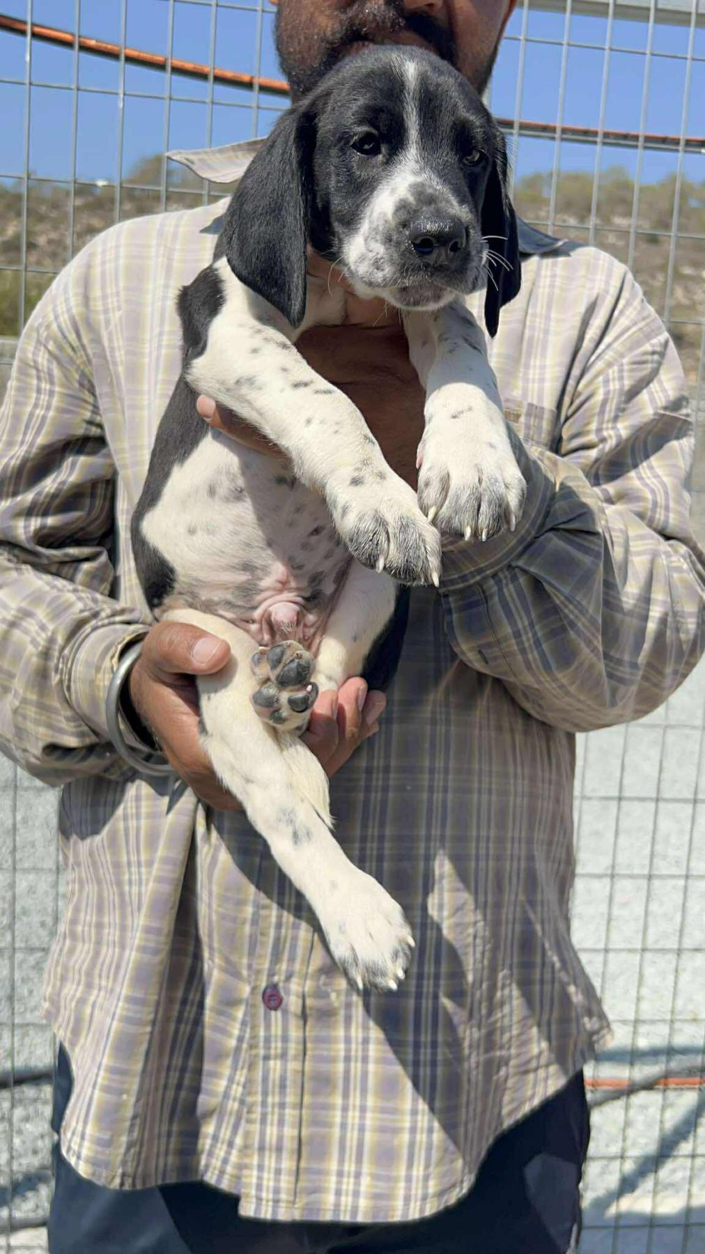 Achileas is een vrolijk en speels mannetje, één van de 12 pups van een moedige Griekse hound-mama. Mama is nog wat bang en beschermend, maar gaf haar kleintjes een veilige en warme start.