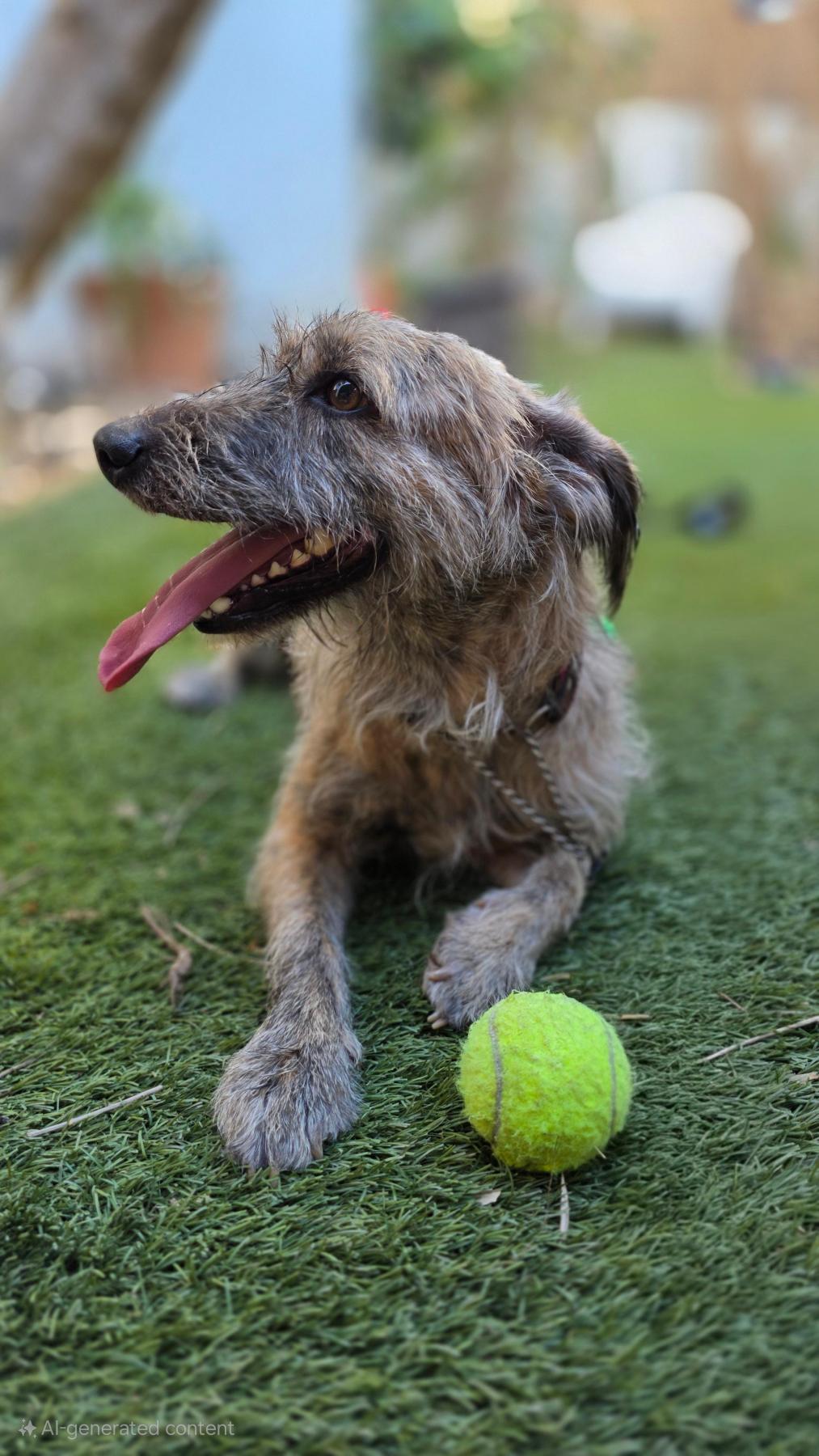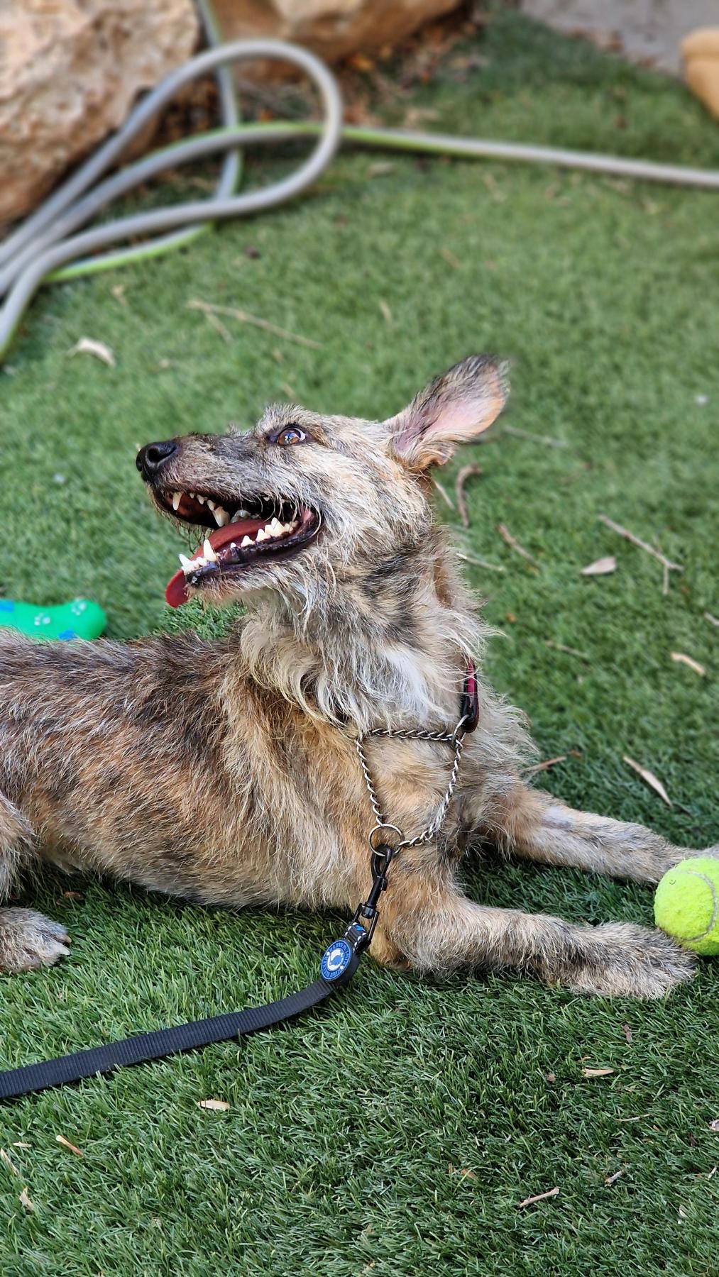 Alfy speelt graag met ballen, brengt ze terug en nodigt je enthousiast uit om mee te doen. Hij kent al wat basiscommando’s, loopt netjes aan de lijn en begrijpt goed wanneer iets niet mag.