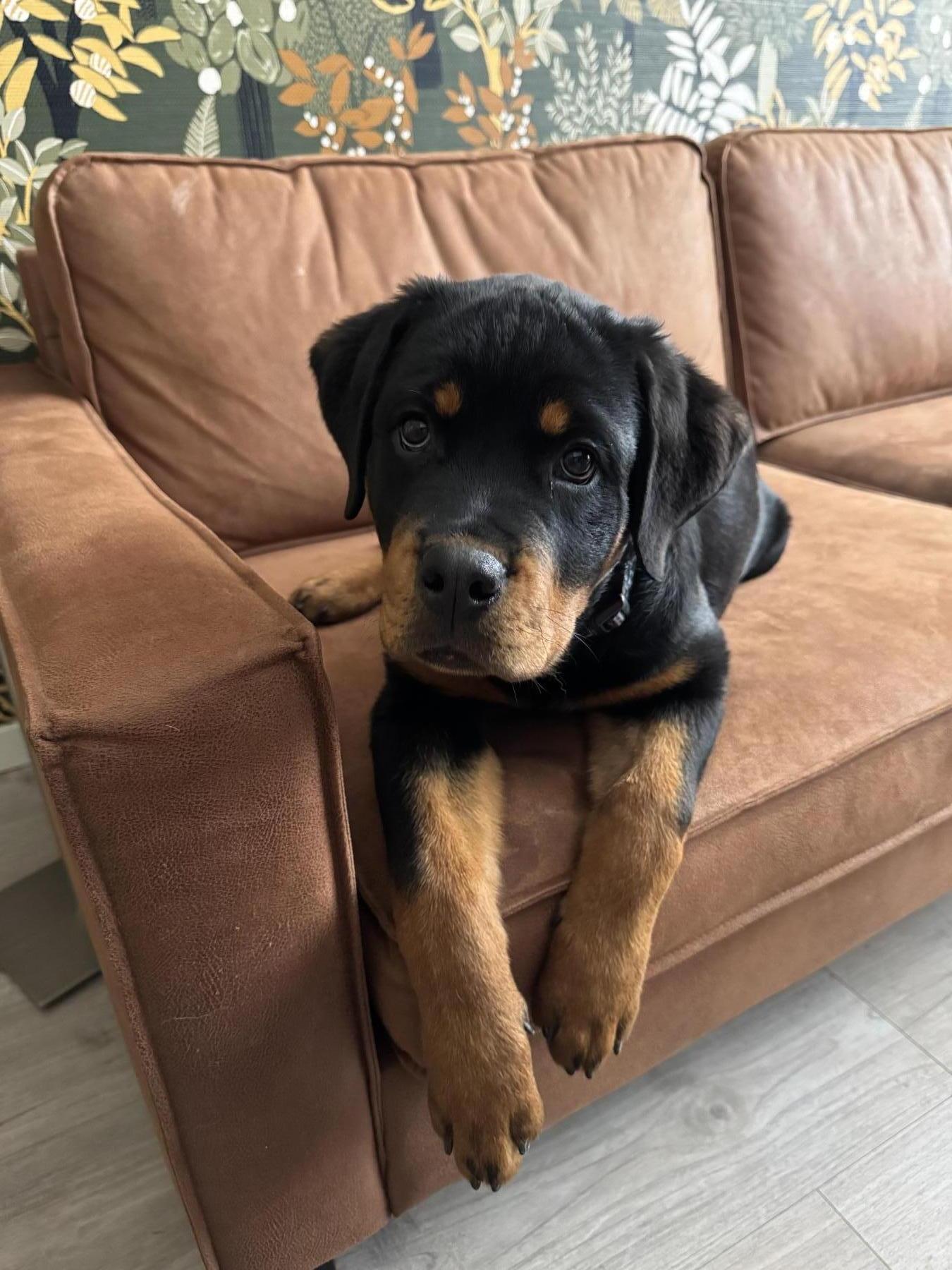 In oktober 2024 geboren, sinds januari is met ons. Het is een vrolijke en gehoorzame pup die constant menselijke aandacht nodig heeft