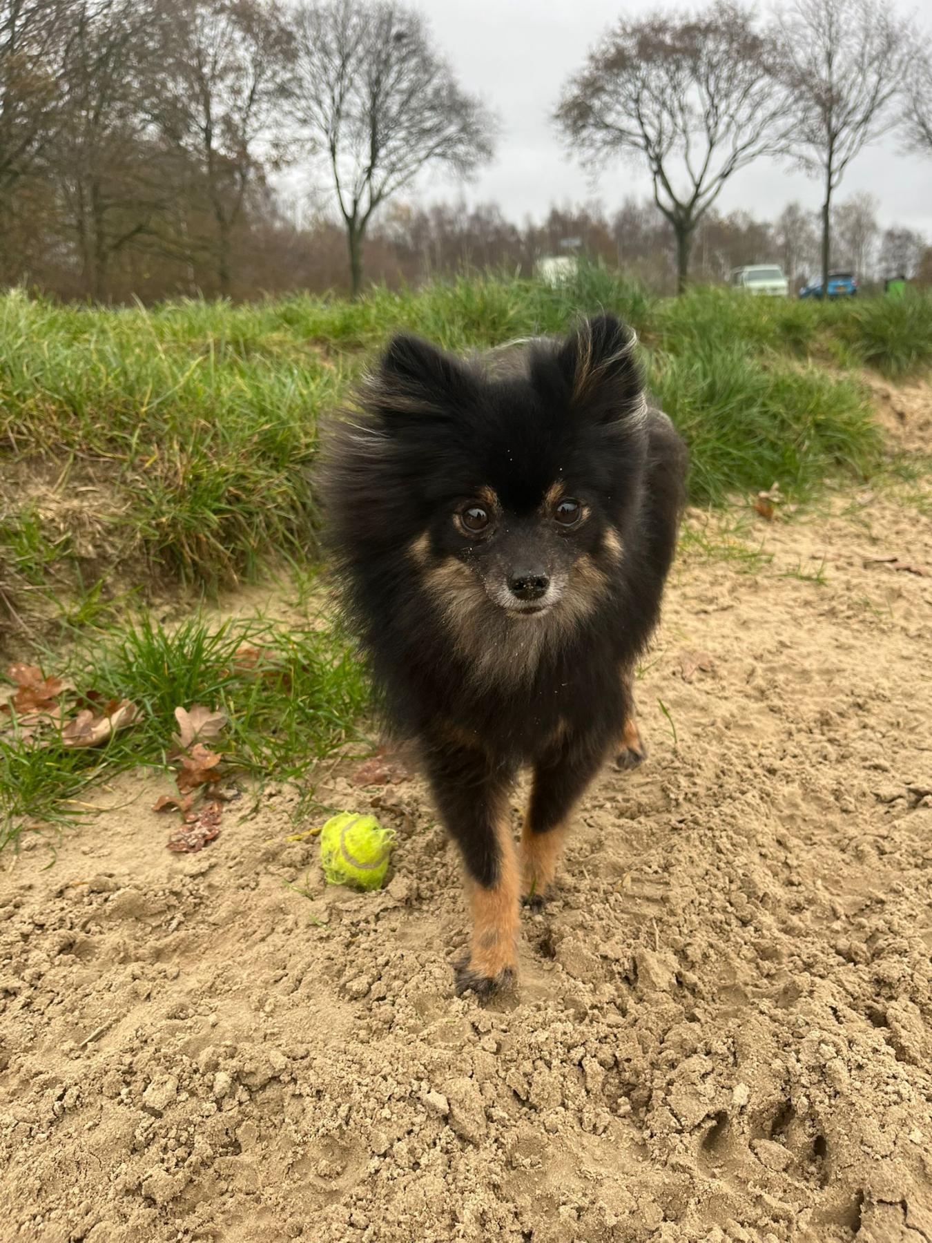 Ontzettend slim, energiek, vrolijk en lief hondje. Houdt van knuffelen. Hij is dol op kinderen en met de bal spelen. Hij kan alleen zijn. Blaft bij binnenkomst en weggaan. Hij kan los lopen en luistert goed.