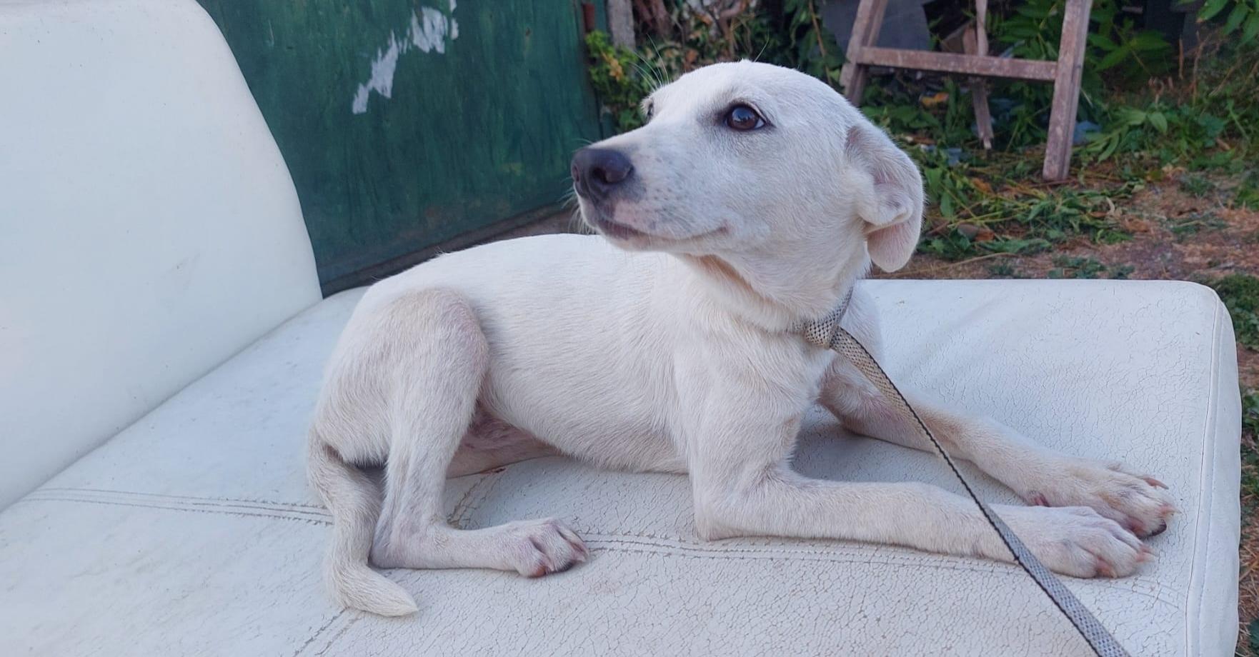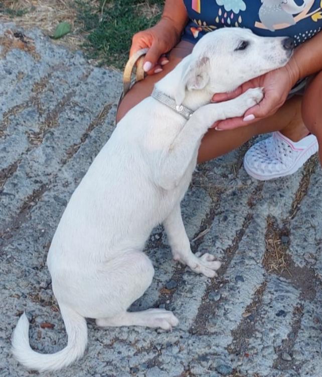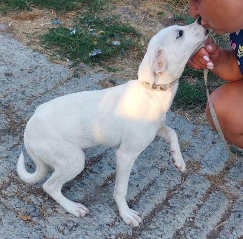 Bella is een erg vrolijke en speelse pup. Ze speelt graag met andere honden. Ze wil graag menselijke aandacht, is knuffelbaar en verwend. Ze werd gevonden langs de weg, buiten de stad. Ze liep langzaam langs de weg en de auto's "vlogen" langs haar heen. Maar sommige mensen zagen haar en stopten. Ze namen haar mee en lieten haar later achter in het asiel.