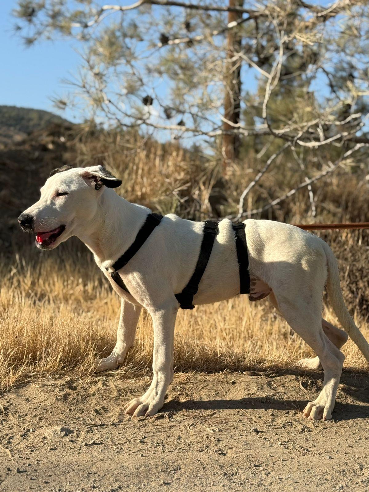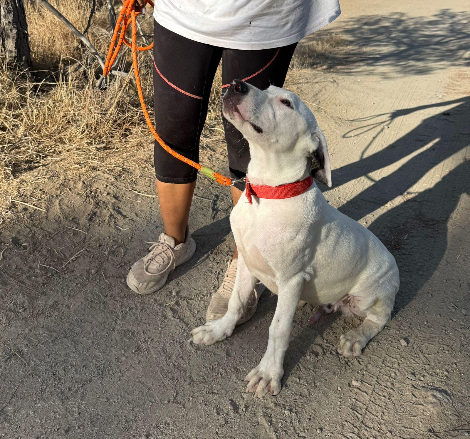 Ben is een prachtige reu van 5 maanden oud, weegt nu zo’n 15 kilo en zal uiteindelijk uitgroeien tot een middelgrote hond van ongeveer 20–25 kilo. Zijn mama, een ontzettend vriendelijke Stafford-mix, verblijft nog altijd in het asiel. Ben en zijn zusjes zijn daar geboren en opgegroeid.