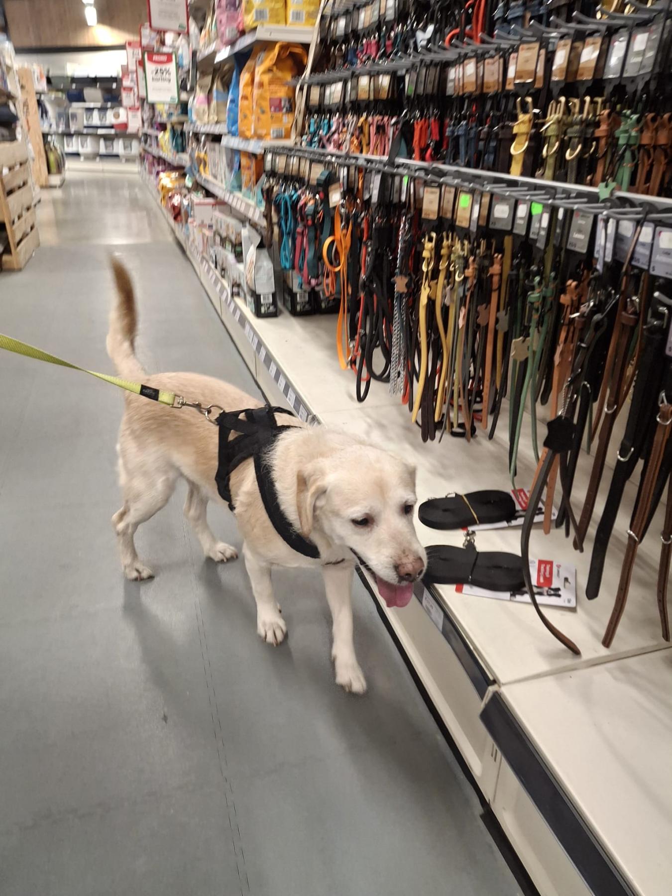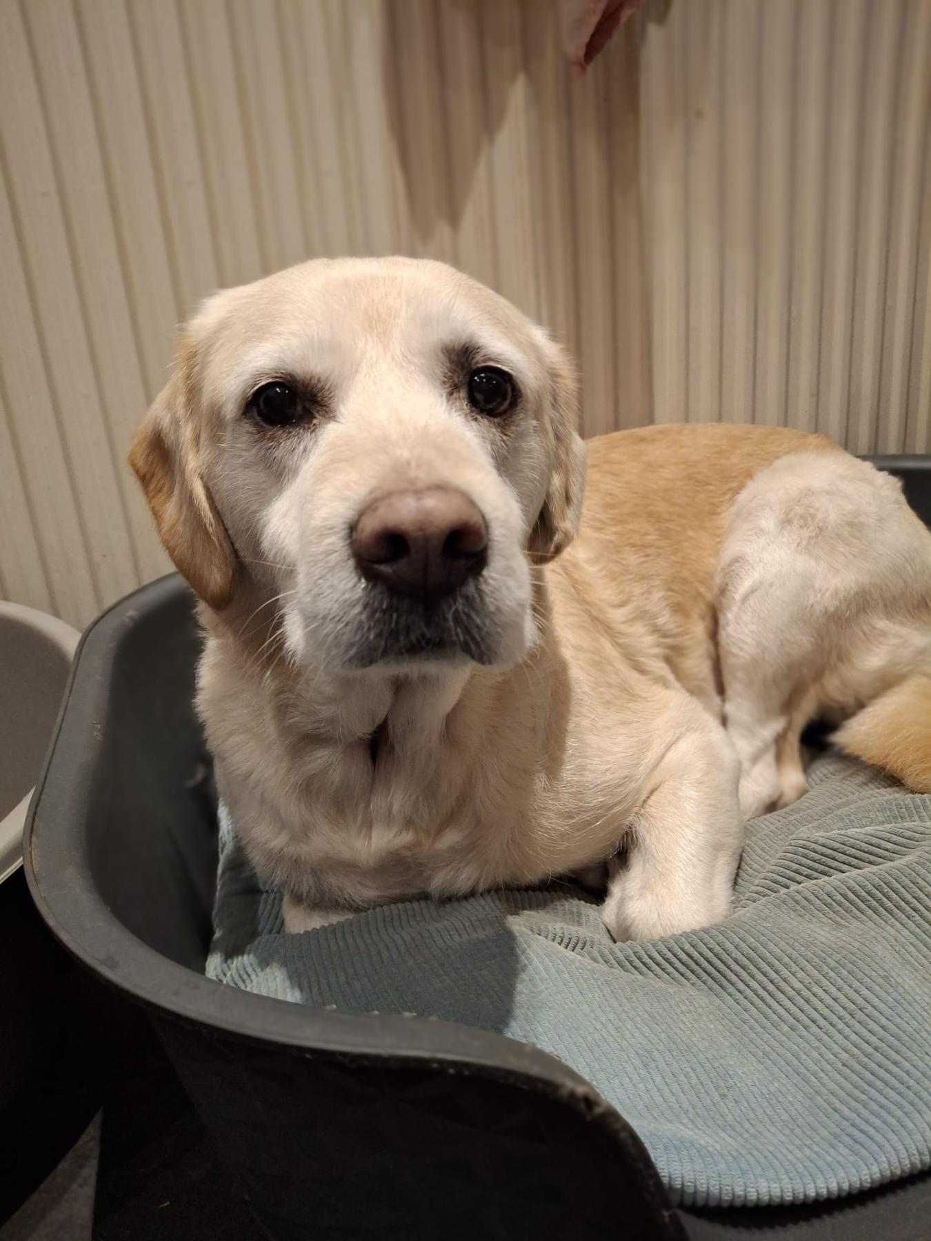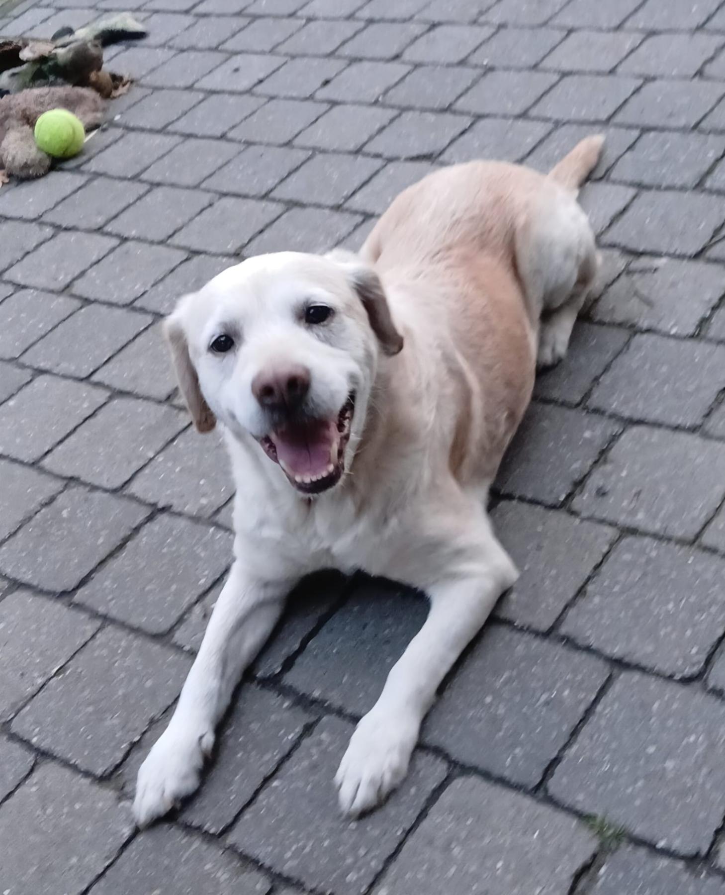 Hij is een super lieve labrador mix, houdt van knuffelen en is aanhangkelijk. Gaat graag op wandel, dat doet hij nog erg goed en is nog erg sterk. In huis is rustig, zindelijk, maakt niks kapot. Kan perfect met andere honden behalve pups. Ook als enige hond geen probleem als hij zijn knuffels maar krijgt.