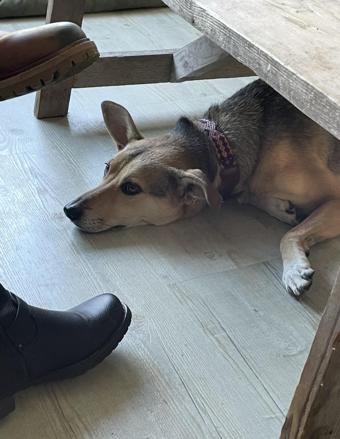 Ze is zo lief en heeft een baas nodig met een positieve aanpak die haar vertrouwen kan winnen. Dan heb je aan haar een schat van een hond. Ze is leerbaar.. Van een fysieke uitdaging wordt ze heel blij. Lange wandelingen en rennen naast de fiets is totaal geen probleem. Haar grootste hobby is achter gegooide stokken of een balletje aan rennen. In huis is ze rustig, ook als ze fysiek een keer niet is uitgedaagd. In de avond komt ze wel even aandacht vragen, ze wil dan graag geaaid worden. Ze heeft een paar angsten waar je niet omheen kan. Grote items los in huis zoals een grote doos of een bezem (ook in handen van de baas), durft ze niet direct langs te lopen. Ze is bang voor de stofzuiger. Ze slaat zeker aan wanneer er luchtballonnen zijn en bij vuurwerk, met oud en nieuw heeft ze hulp nodig in vorm van medicatie. Wel wat waaks bij voorbijgangers met honden en naar katten, blaft dan. Ze ziet de stoep voor het huis als ‘ons terrein’. Ook als ze de buren thuis hoort komen slaat ze wel eens aan (een gezamenlijke oprit) maar niet altijd.