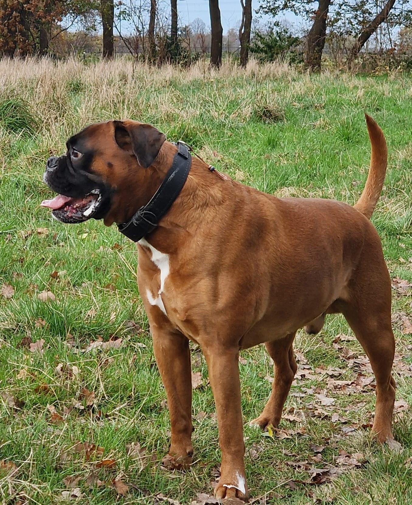 Lief. Een clown. Houdt van wandelen en kan los lopen. Blijft goed bij je. Hij snapt niets van spelen met een bal oid.