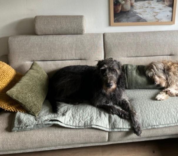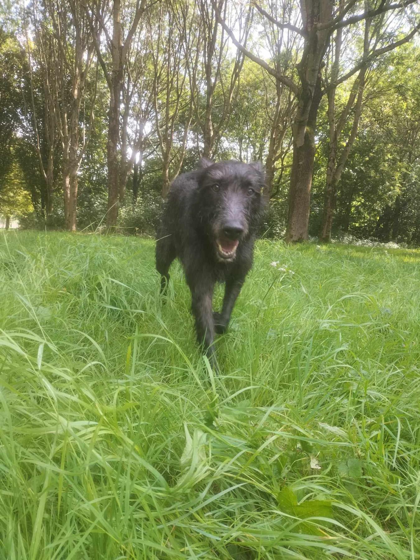 Booka is een prachtige, grote hond van ongeveer 60 cm hoog – qua uiterlijk en formaat doet hij denken aan een Ierse Wolfshond. We weten wie zijn mama is, maar zijn vader blijft een mysterie. Wat we wél zeker weten, is dat Booka een vriendelijk en gevoelig karakter heeft