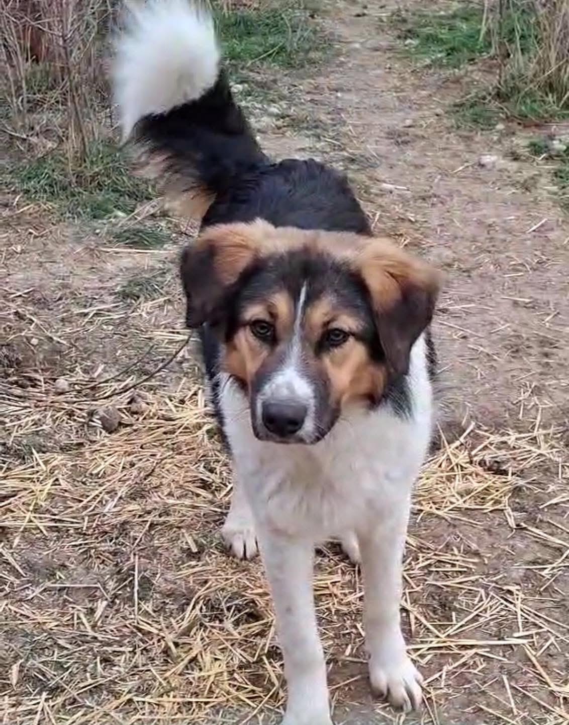 Bram lijkt een mix van een herder en een berghond, en zal uitgroeien tot een grote, hond.