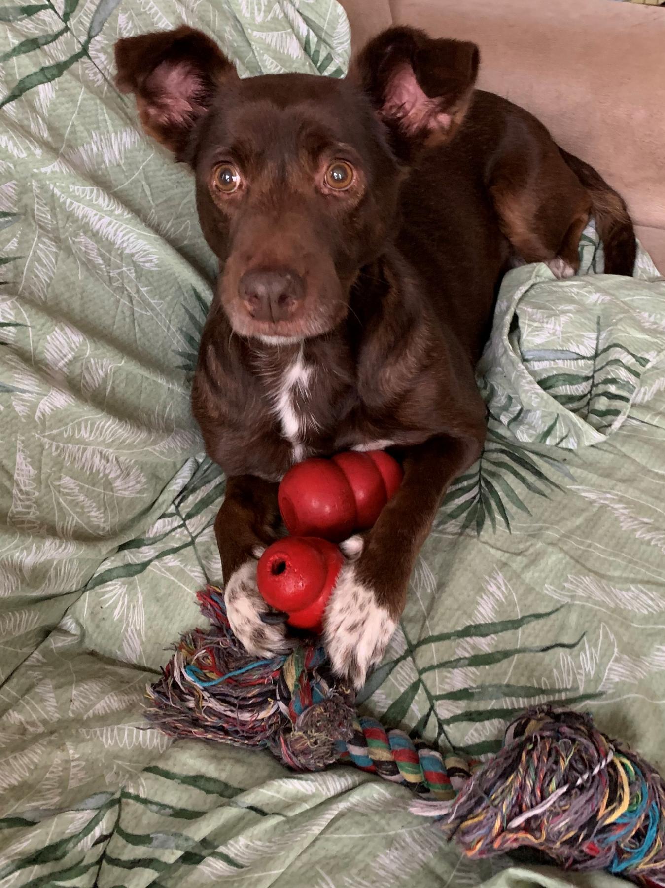 Brown kwam 3 jaar geleden uit Spanje en haar verleden is onbekend maar ze is vermoedelijk in gebruik geweest als fokteef en afgedankt. Aanhankelijk en enthousiast, maar het vinden van een passend thuis blijkt moeilijk omdat mensen haar qua zorg te bewerkelijk vinden. Brown heeft een zwakke sluitspier van de blaas. Dankzij medicatie is ze in de nacht droog maar overdag is het belangrijk dat ze met regelmaat buiten kan plassen. Brown kan prima alleen thuis zijn, maar omdat ze vaker uit moet is ze niet geschikt voor mensen die haar langer dan 3 uur alleen moeten laten. Naast dagelijks wandelen zoeken we een huis met goed omheinde tuin waar ze tussendoor mag plassen. Want Brown moet net als een pup direct uit na het slapen, eten en spelen en dan is er niet altijd tijd om haar helemaal aan te lijnen. Brown kijkt niet om naar haar nare verleden maar leeft in het heden en zoekt gezellige actieve baasjes om samen te genieten van knuffelen, wandelen, spelen (en eten).