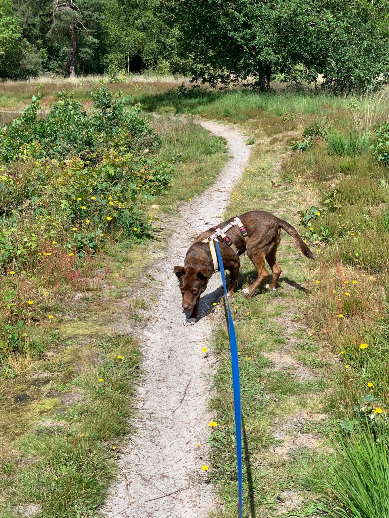 Brown is een onherleidbare mix met 47cm en 20 kilo een leuke middelmaat. Sommigen zien een labrador in de mix en anderen een amerikaanse staffie. Ze heeft in ieder geval het bijbehorende enthousiasme en lompheid van deze rassen. Sociaal in de roedel en kan soms leuk met andere honden spelen, maar een huis als hond alleen lijkt het meest geschikt. Met wandelen reageert ze prima op vreemde honden.
