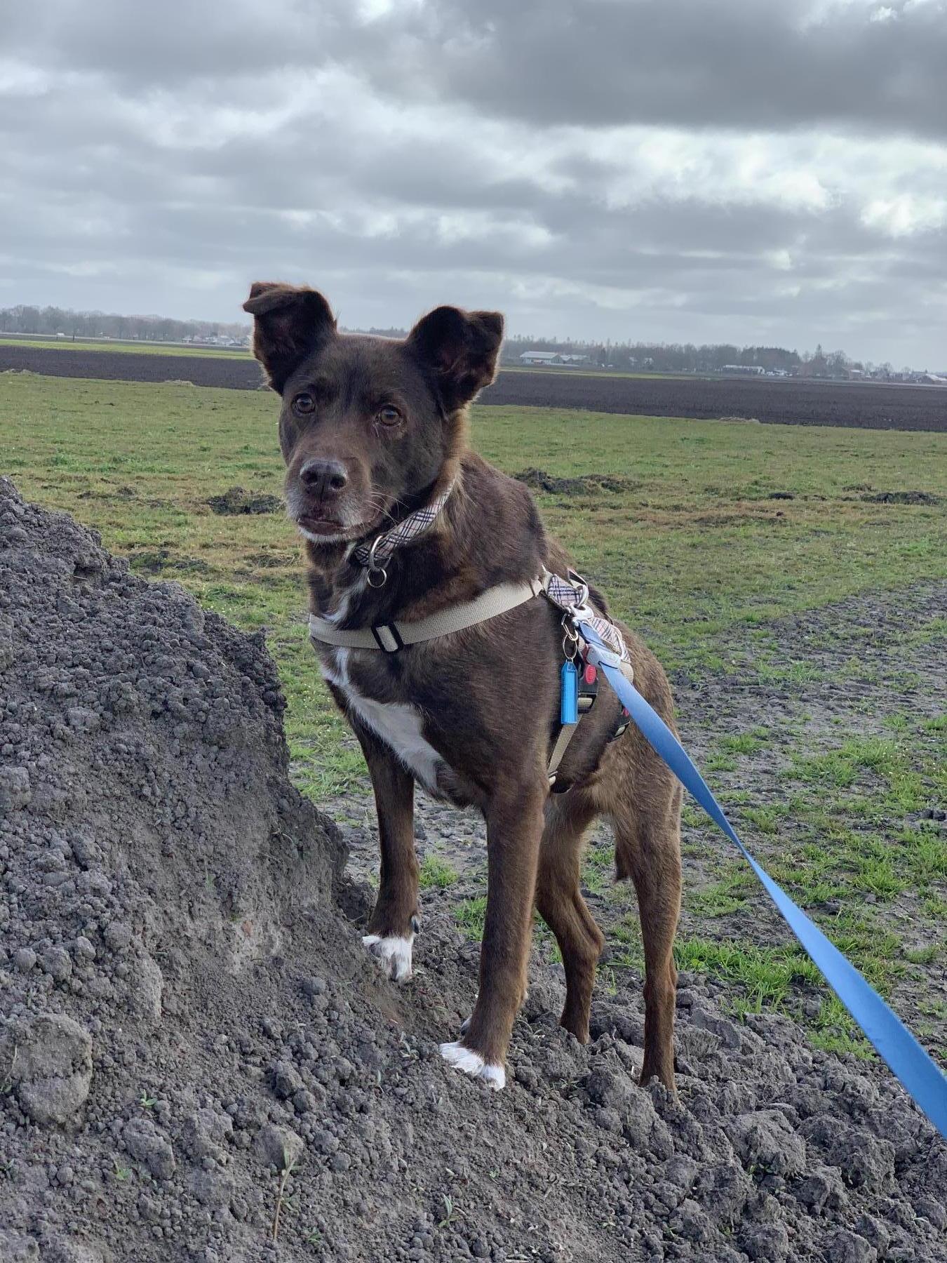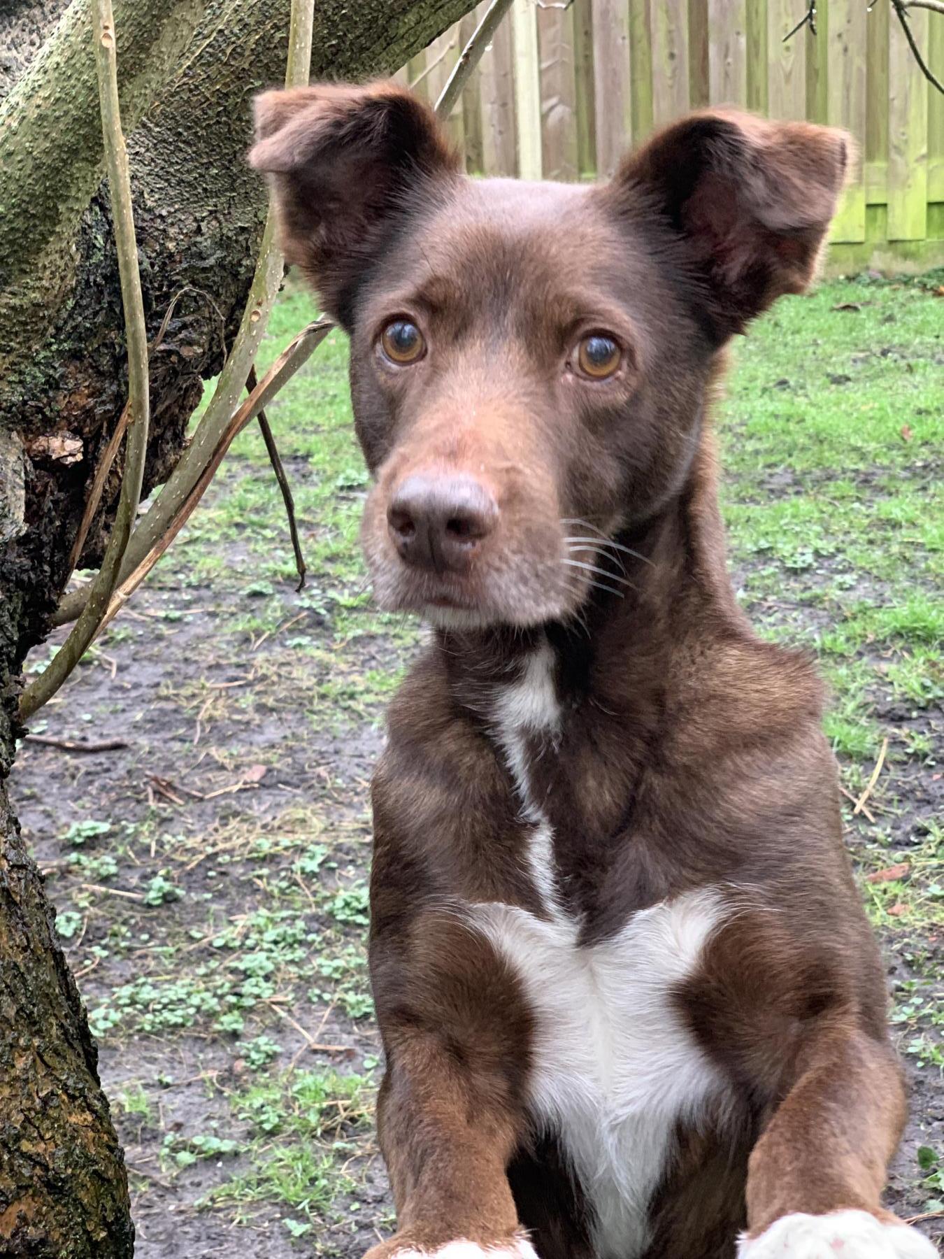 Brown kwam 3 jaar geleden uit Spanje en haar verleden is onbekend maar ze is vermoedelijk in gebruik geweest als fokteef en afgedankt. Aanhankelijk en enthousiast, maar het vinden van een passend thuis blijkt moeilijk omdat mensen haar qua zorg te bewerkelijk vinden. Brown heeft een zwakke sluitspier van de blaas. Dankzij medicatie is ze in de nacht droog maar overdag is het belangrijk dat ze met regelmaat buiten kan plassen. Brown kan prima alleen thuis zijn, maar omdat ze vaker uit moet is ze niet geschikt voor mensen die haar langer dan 3 uur alleen moeten laten. Naast dagelijks wandelen zoeken we een huis met goed omheinde tuin waar ze tussendoor mag plassen. Want Brown moet net als een pup direct uit na het slapen, eten en spelen en dan is er niet altijd tijd om haar helemaal aan te lijnen. Brown kijkt niet om naar haar nare verleden maar leeft in het heden en zoekt gezellige actieve baasjes om samen te genieten van knuffelen, wandelen, spelen (en eten).