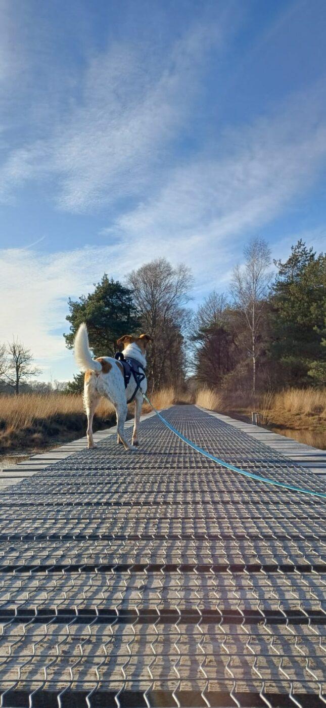 Bunny draagt echter een “rugtasje”. Als pup heeft ze een tijd op straat in Portugal geleefd. Daardoor is ze onzeker naar vreemden, fietsers en jonge kinderen. Wandelen in een drukke woonwijk is voor haar spannend en momenteel een grote uitdaging. In rustige natuurgebieden gaat het beter, al kan ook daar drukte haar overprikkelen. Ze heeft veel energie en zou graag lange wandelingen maken, maar heeft hierin begeleiding, geduld en structuur nodig.