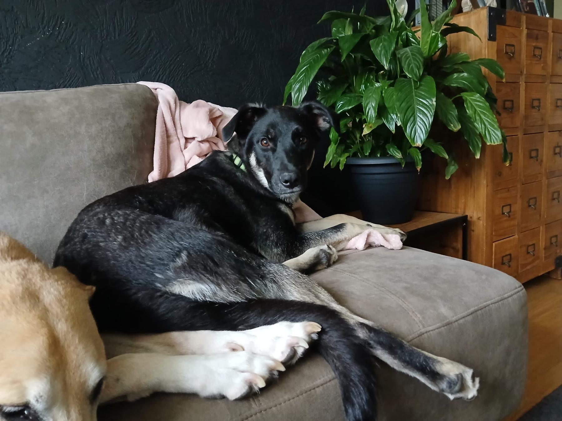 Ze heeft veel weg van een Beauceron, een Franse herder, dus kan nog uitgroeien tot een grotere hond. Haar gewicht is nu al 22 kg. met een schofthoogte van 53 cm.