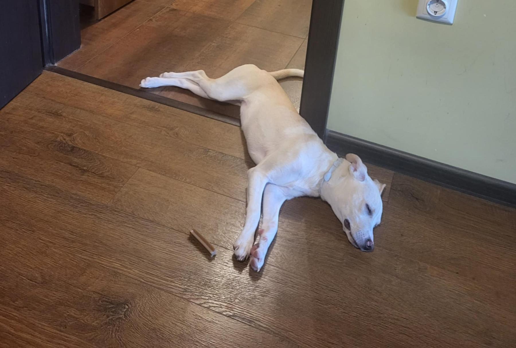 Diji is als pup op straat gegooid. Ze was geadopteerd door een geweldige familie, de vrouw heeft een allergie voor dierenhaar. Toch wist ze een weg te vinden het diertje in huis te halen. Ze raakte zwanger van haar tweede kindje en dat verergerde haar allergie. Het hele gezin is enorm verdrietig. Voor Diji wordt een nieuw gezin gezocht, omdat de vrouw tijdens de zwangerschap geen medicatie tegen de allergie kan gebruiken. Diji is nog jong. Ze is gesteriliseerd. Het is een energiek meisje en ze kan goed overweg met kinderen en andere dieren. Ze is gewend aan het leven in huis (let op! Na een verhuizing moet een dier altijd tijd krijgen om de nieuwe regels te begrijpen!). Als je bulgaars spreekt, ze kent basis commando's. In het appartement waar ze woont is ze braaf, ze sloopt niet. Ze speelt met haar speeltjes. Op dit moment kunnen ze niet anders dan haar in de tuin te laten logeren. Ze is dat niet gewend en daar is ze onrustig en gaat ze blaffen van ellende. Ze wil binnen wonen. Ze voelt zich ongelukkig en de familie wil het beste voor haar. Als ze binnen mag wonen is ze kalm. Ze is bang in de tuin. Er is ons gevraagd mee te zoeken naar een huisje voor Diji.