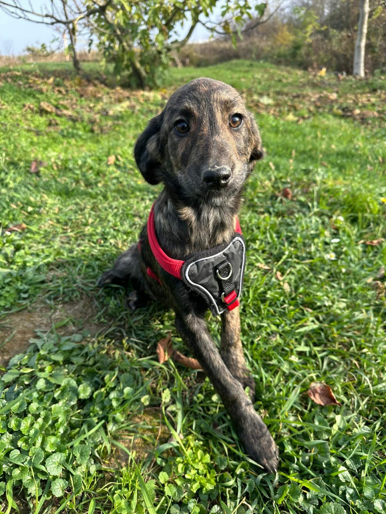 Dima is een lief en kalm meisje uit Bosnië, geboren op 26 juni 2025. Ze is ongeveer 37 cm hoog en weegt rond de 7 kilo – een slanke, sierlijke pup die met haar rustige uitstraling meteen het hart raakt.