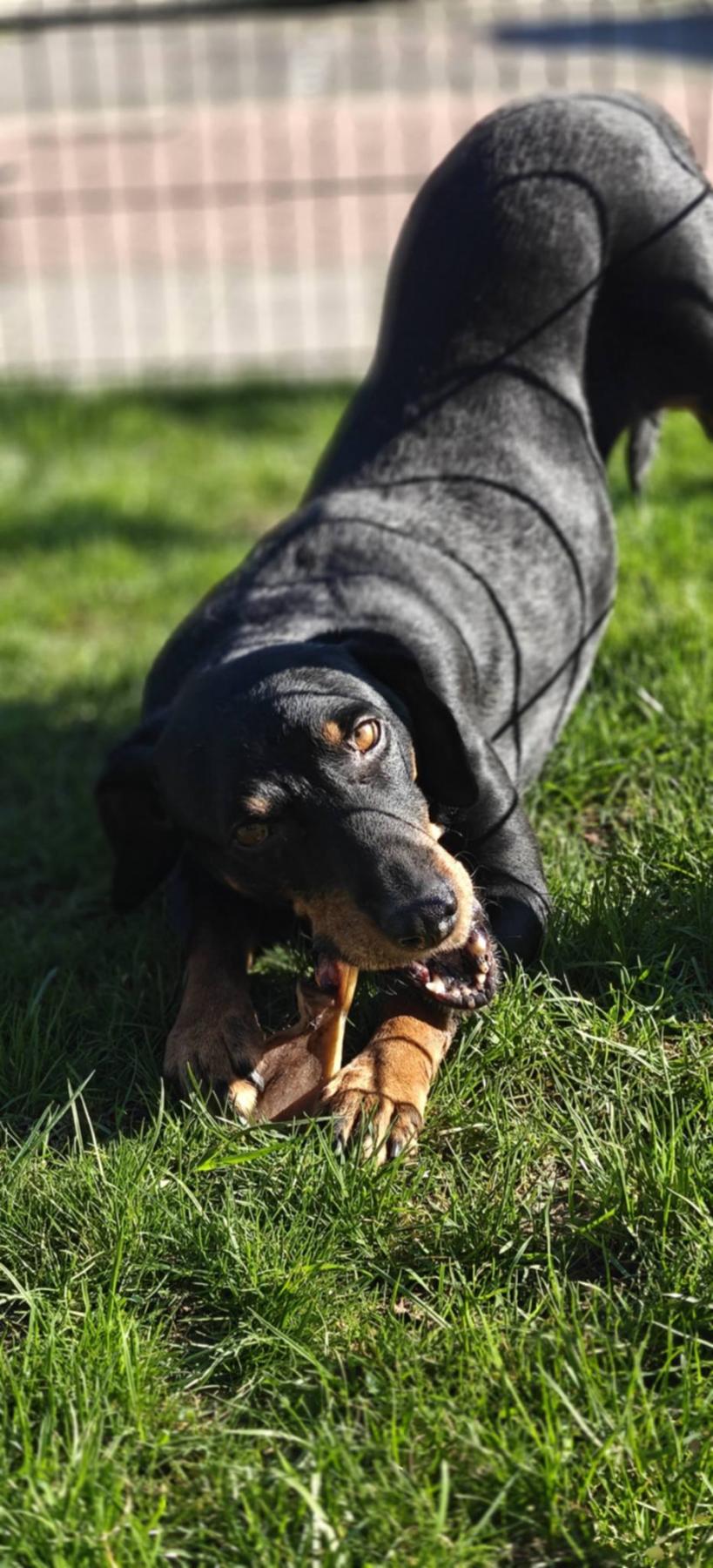 Donnie vind het heerlijk om mee te gaan wandelen en te spelen met hondenvriendjes.