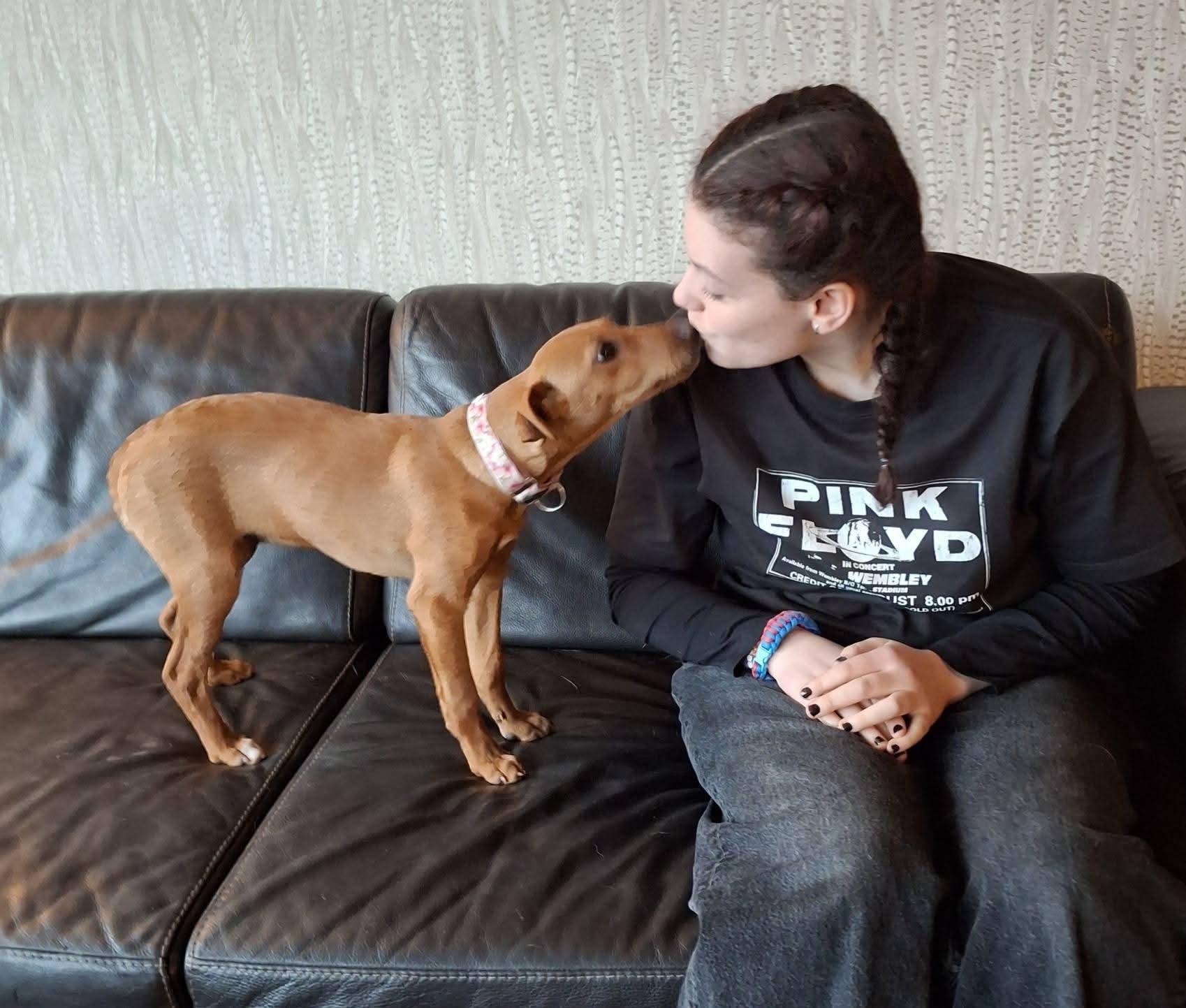 Escandinavia is in ons asiel geboren en is tot 4 maanden opgegroeid bij haar mama en broertjes en zusjes. Ze heeft alle ruimte gehad om lekker te rennen en spelen. Ze heeft een hele lieve zorgzame en speelse mama.