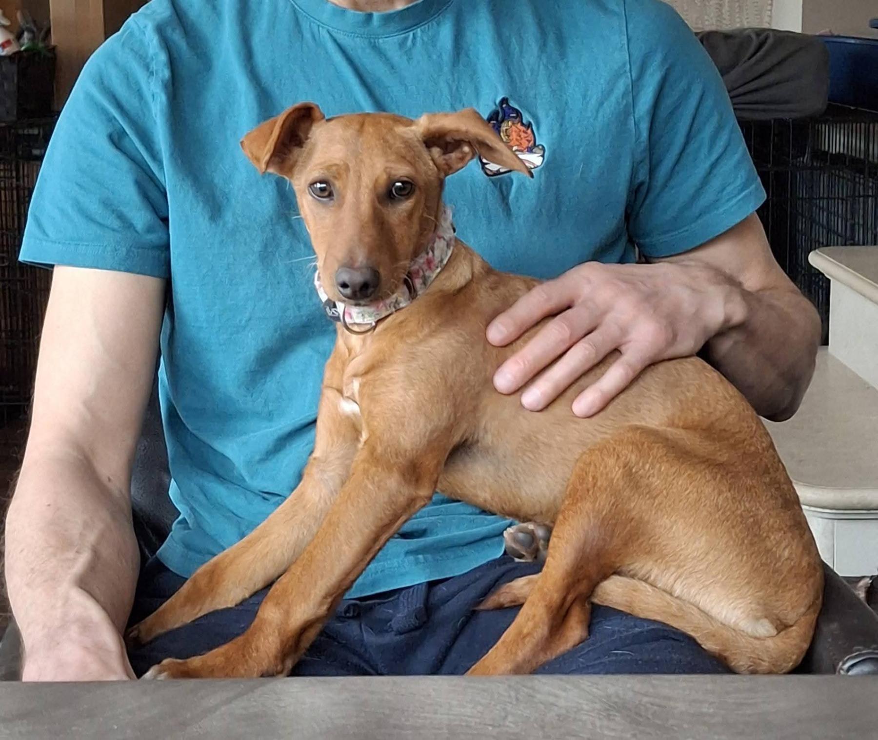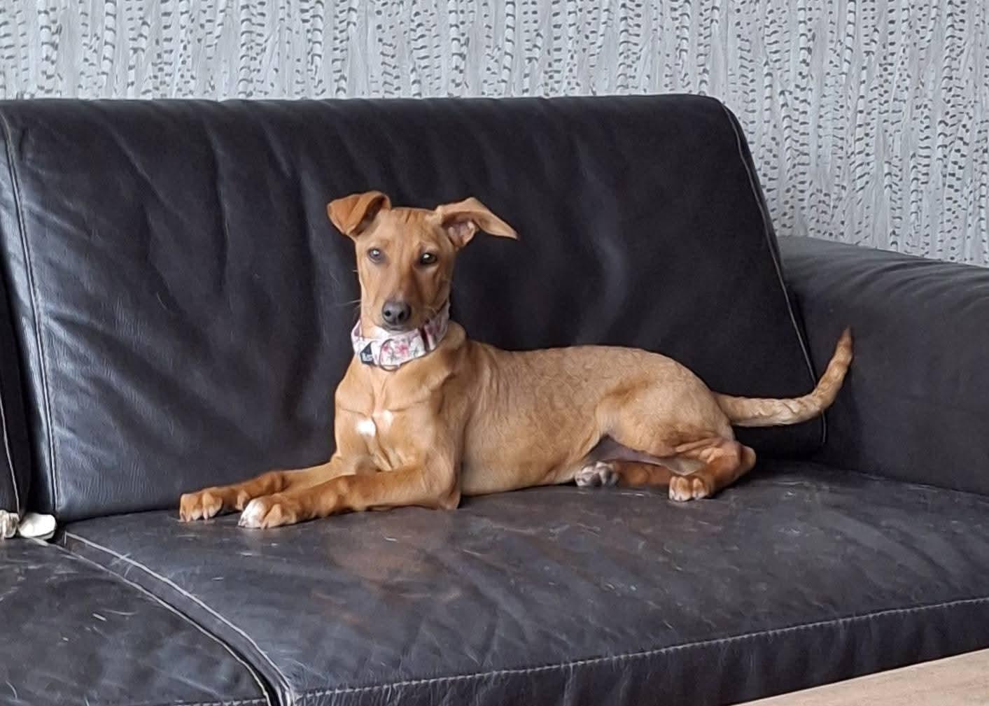 Escandinavia is een vrolijk teefje van vier maandjes jong, met een hartje zo groot als haar nieuwsgierigheid. Deze ondernemende Podenco pup verblijft momenteel in opvang in Stekene, waar ze vol enthousiasme wacht op haar eigen warme mandje. Ze is een echt blij ei: zodra ze je ziet, komt ze vrolijk naar je toe — klaar om samen te spelen of om zich heerlijk tegen je aan te nestelen voor een knuff