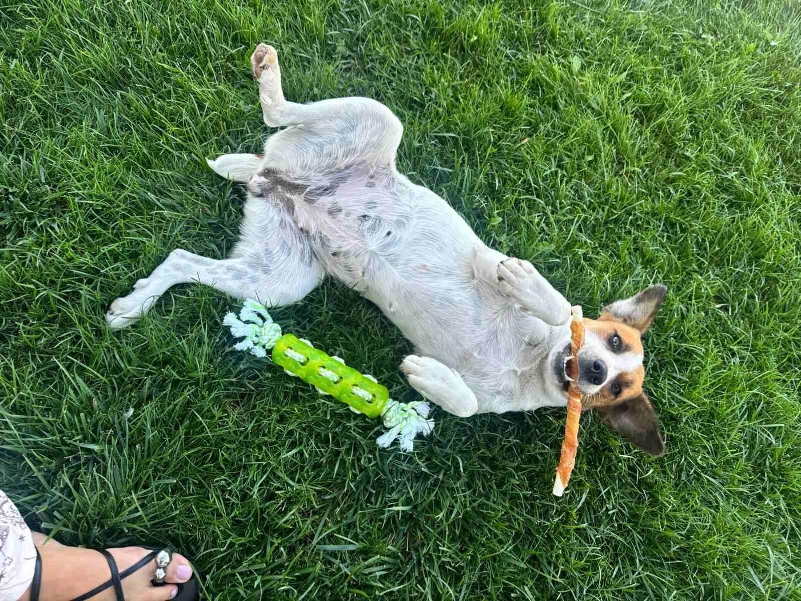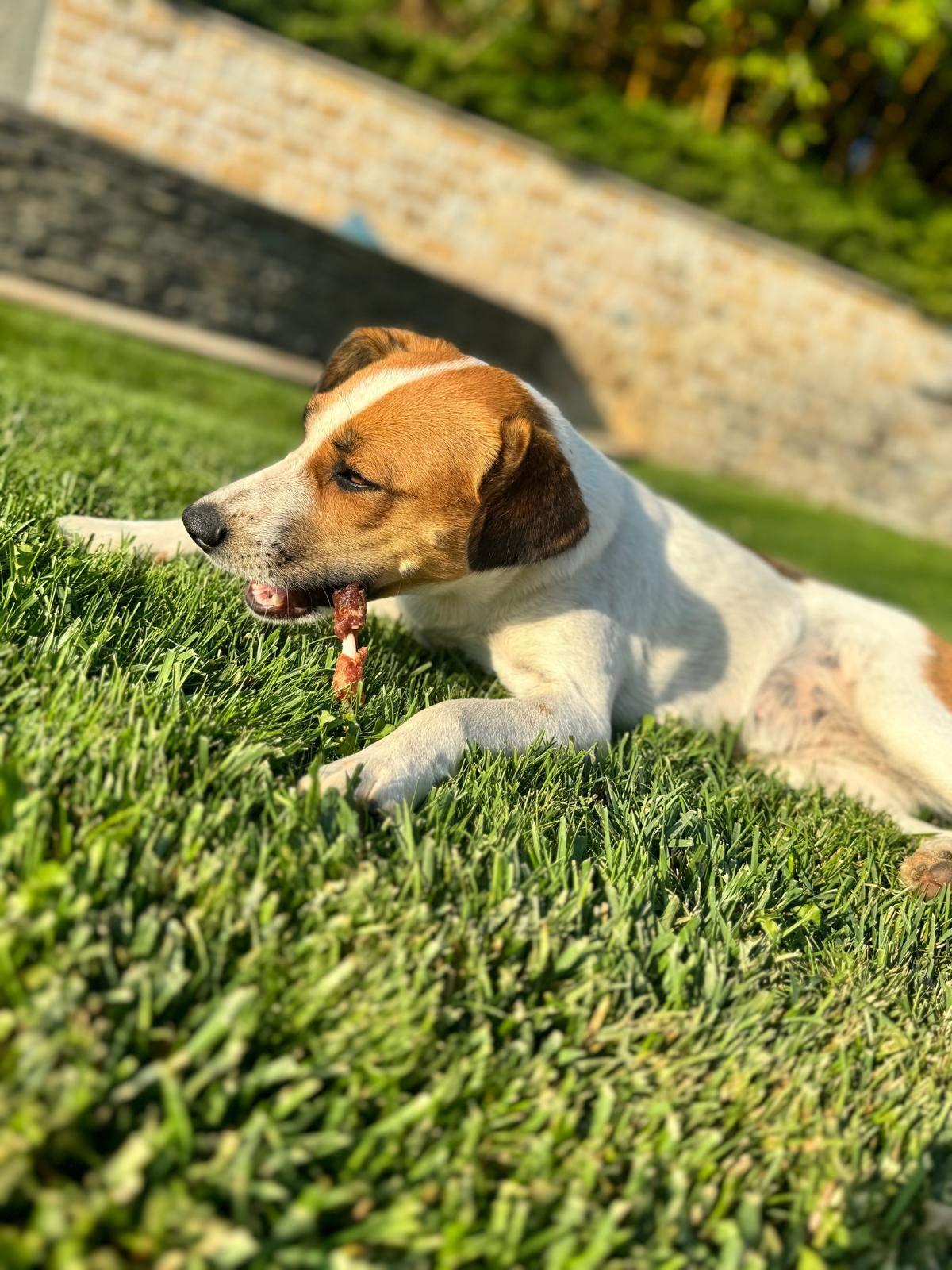 Eva is heel erg schattig! Heel knuffelbaar! Ze is speels, lief en vriendelijk. Ze wil altijd bij je zijn. Ze vindt het heerlijk om met speeltjes te gooien en terug te brengen. Ze zit op commando en wil bravo horen als ze dat netjes heeft gedaan. Ze leert hoe ze aan de lijn moet lopen. Na de castratie werd ze binnen gehouden en ze geeft altijd signalen dat ze naar buiten moet om te plassen en te poepen. Ze doet nooit iets binnen. Ze is een schat. Eva kwam naar de tuinen van een groot hotel en bleef daar. Het personeel zorgde voor haar. Maar het management van het hotel veranderde en het nieuwe management wilde dat Eva weggaat. Nu zit Eva aan een ketting. Ze heeft een hondenhok en 2-3 keer wordt ze uitgelaten, maar ze kan niet meer vrij zijn. Er is geen pleeggezin voor haar en ze kan niet naar het asiel. We hebben een afspraak met het management. Ze kan daar blijven bij de mensen die van haar houden en voor haar zorgen totdat ze geadopteerd wordt.