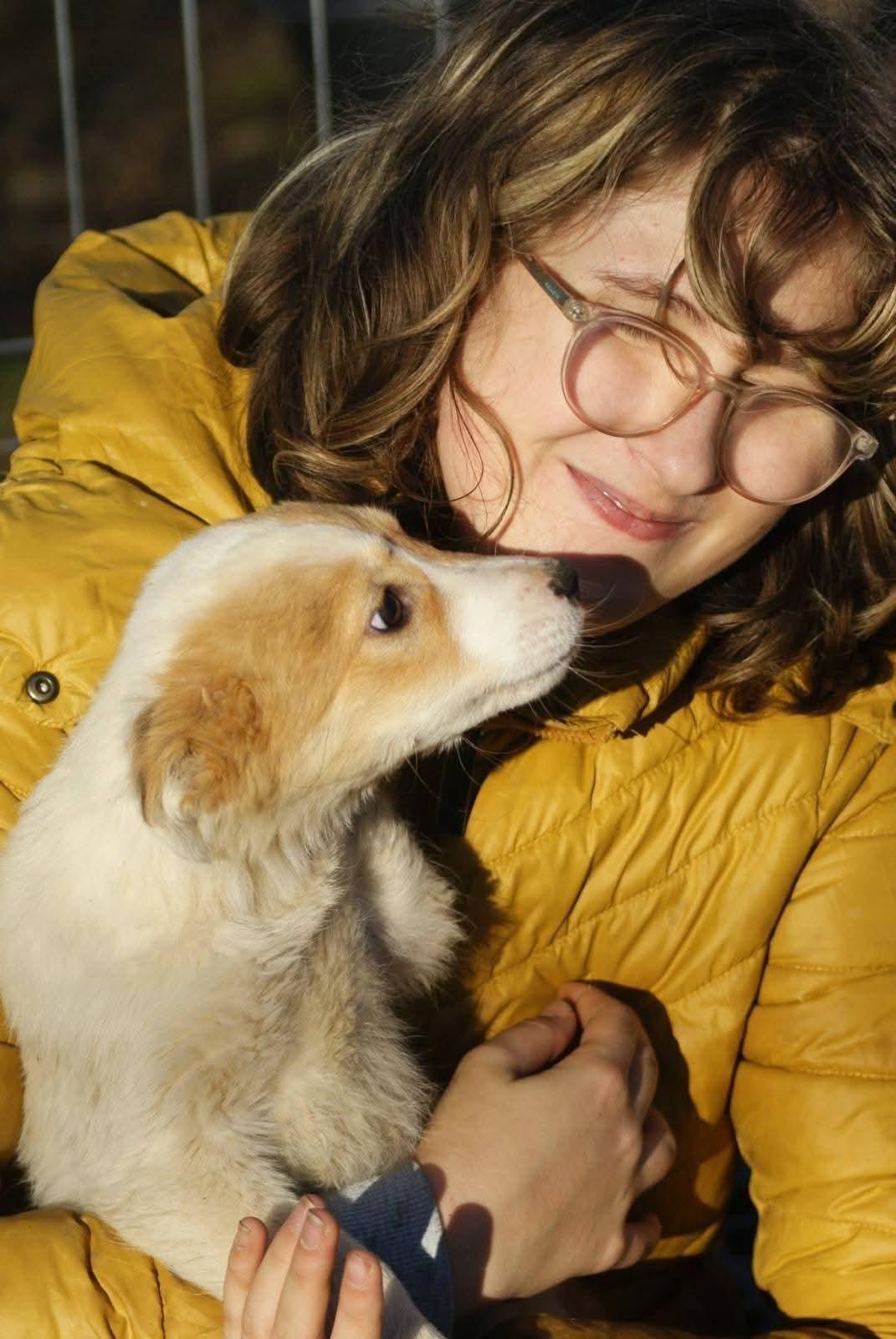 Evi zal als volwassen hond ongeveer 45 cm groot worden. Ze is zachtaardig, sociaal en een echte knuffelkont in wording. Een pup die met de juiste begeleiding zal uitgroeien tot een trouwe en liefdevolle gezinshond.