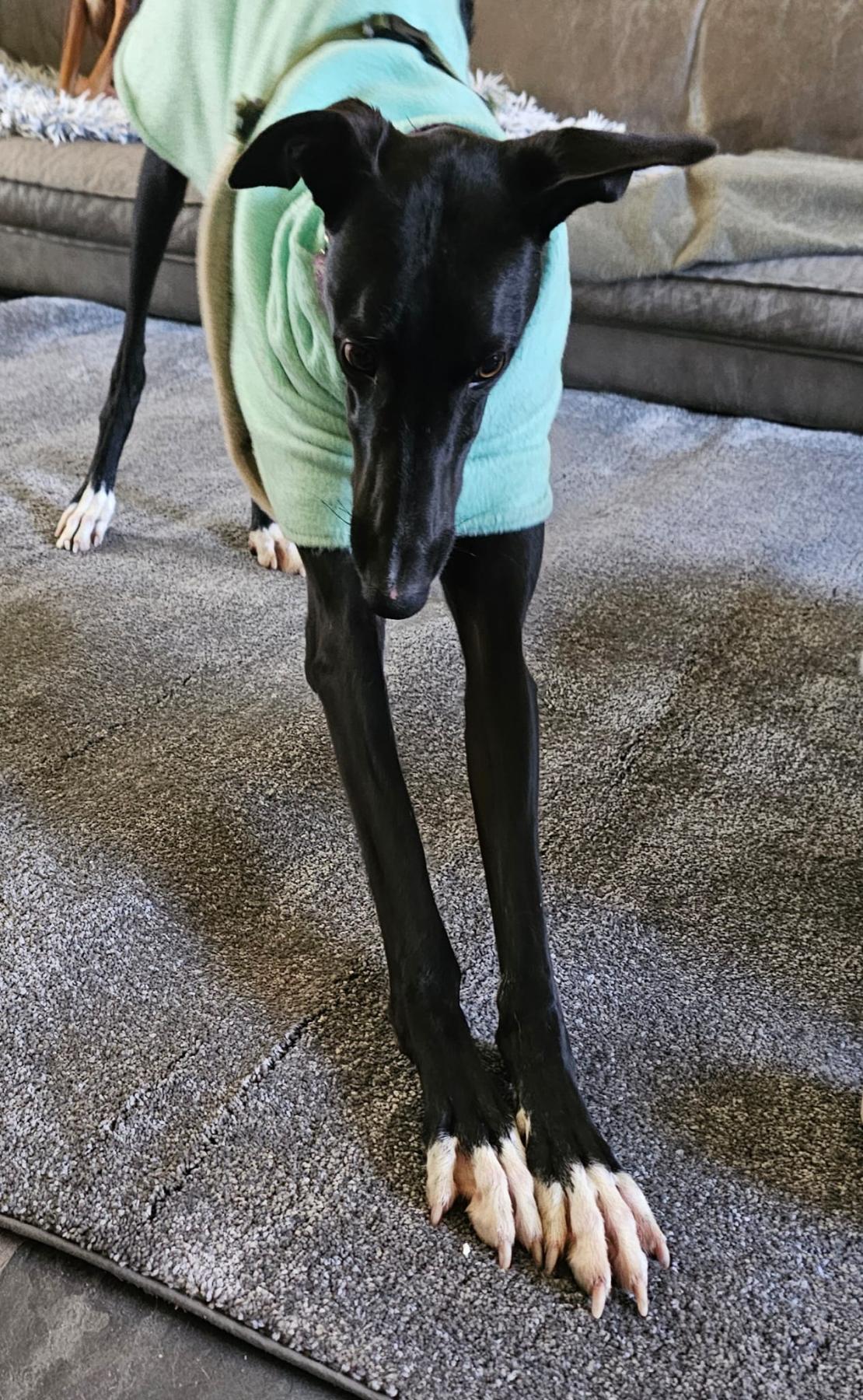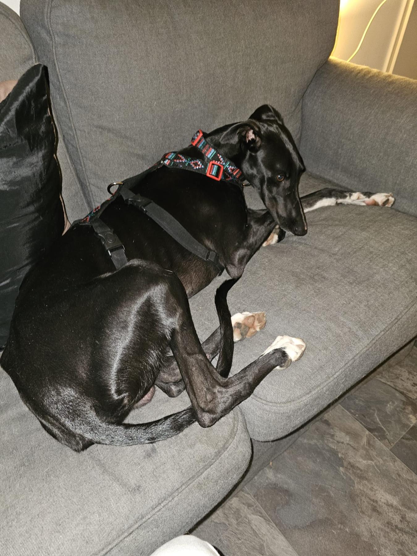Hij heeft een zwart glimmende vacht met witte borst en teentjes. Van binnen is hij vrolijk, speels en heel lief! Wat een heerlijk ventje.