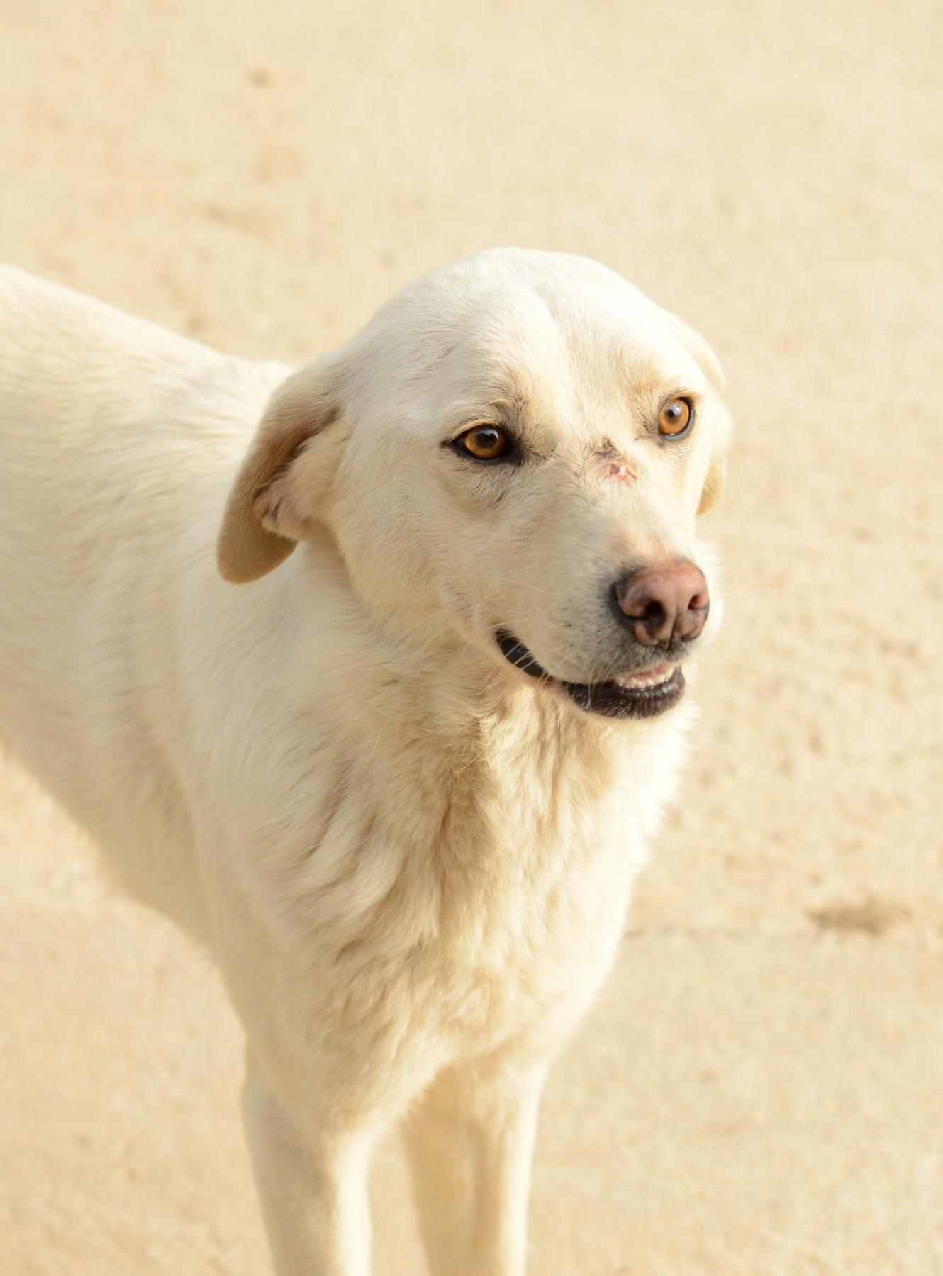Georgie was de voorzichtigste. Het heeft wel even geduurd voordat ze ons vertrouwde maar inmiddels is dat helemaal over en komt ze dus dolgraag knuffelen en spelen. Georgie heeft een litteken op haar snuit. In Roemenië zijn er mensen die geloven dat wanneer ze een brandplek op de neus van de hond maken, deze niet vatbaar is voor ziekten. Waarschijnlijk is dit ook bij Georgie gebeurd voordat ze bij ons in de opvang kwam.