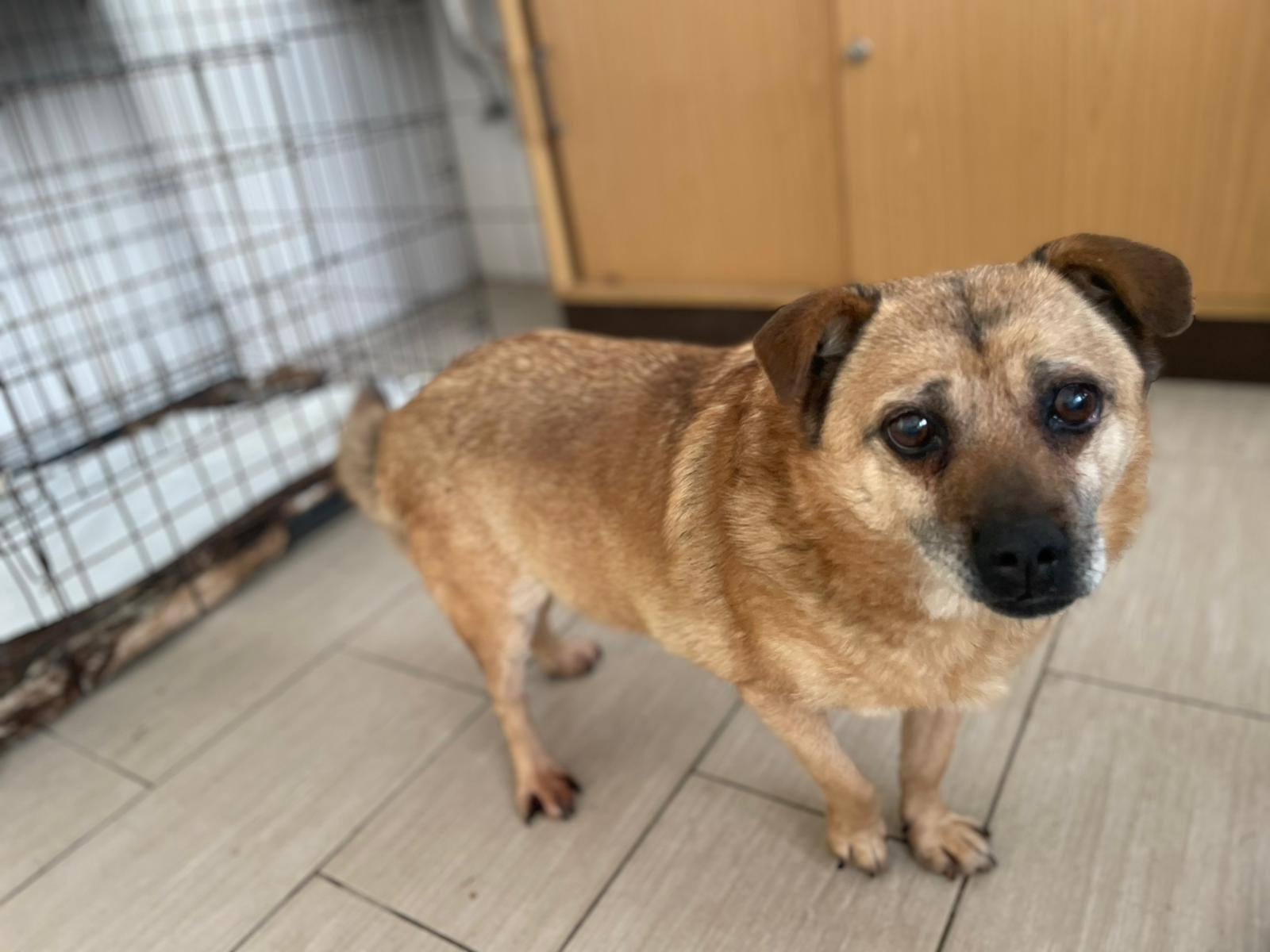 Gina is waarschijnlijk al wat ouder, ongeveer 10 jaar, zo’n hondje dat geen lange wandelingen of drukte meer nodig heeft, maar wél warmte, rust en liefde.