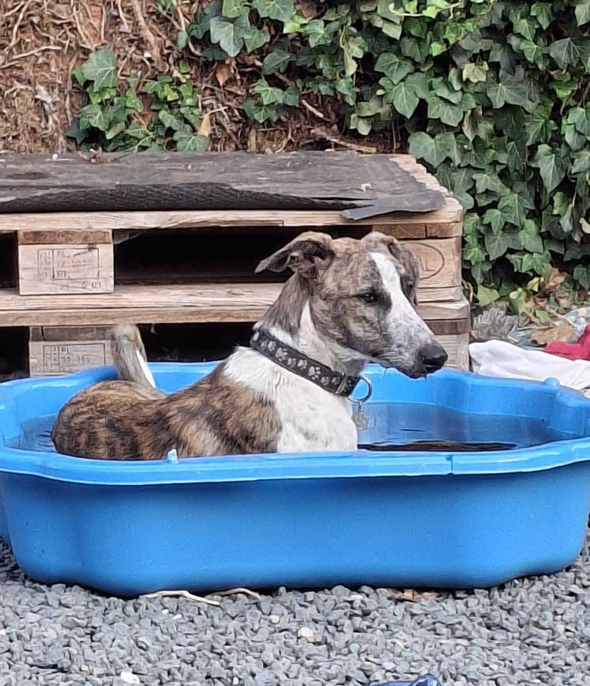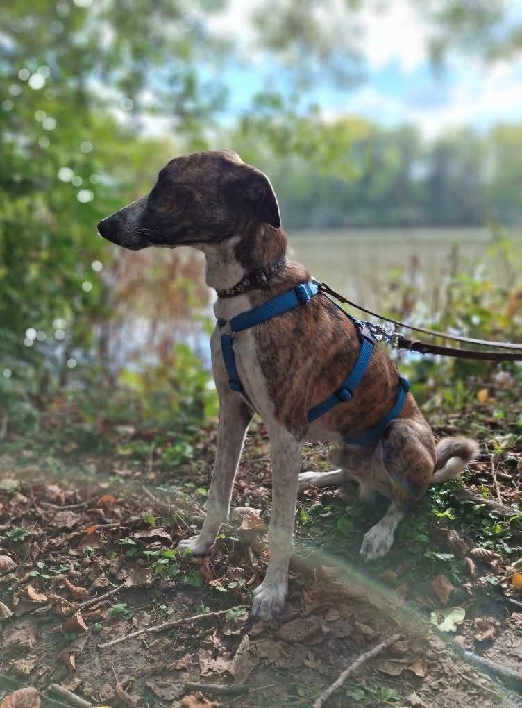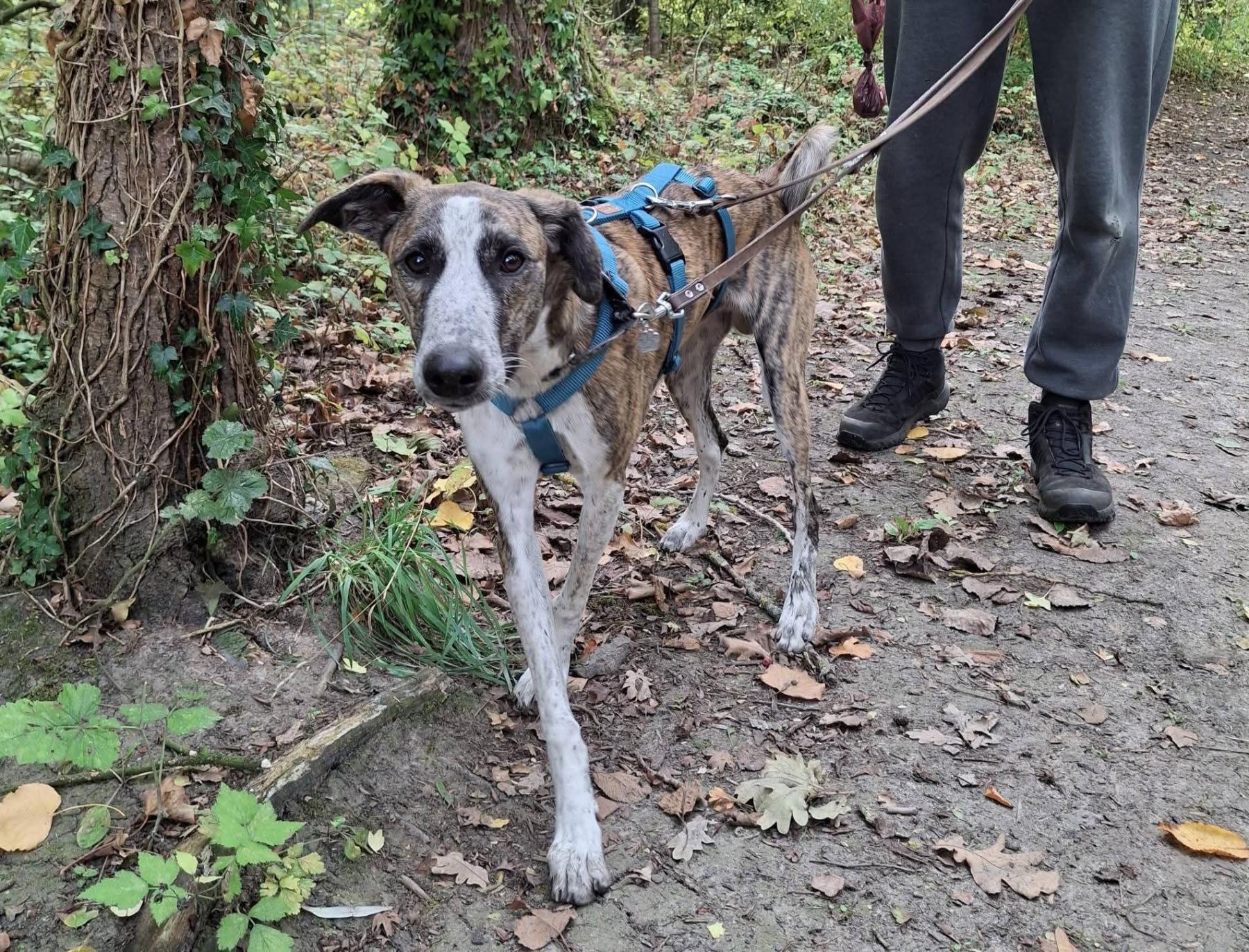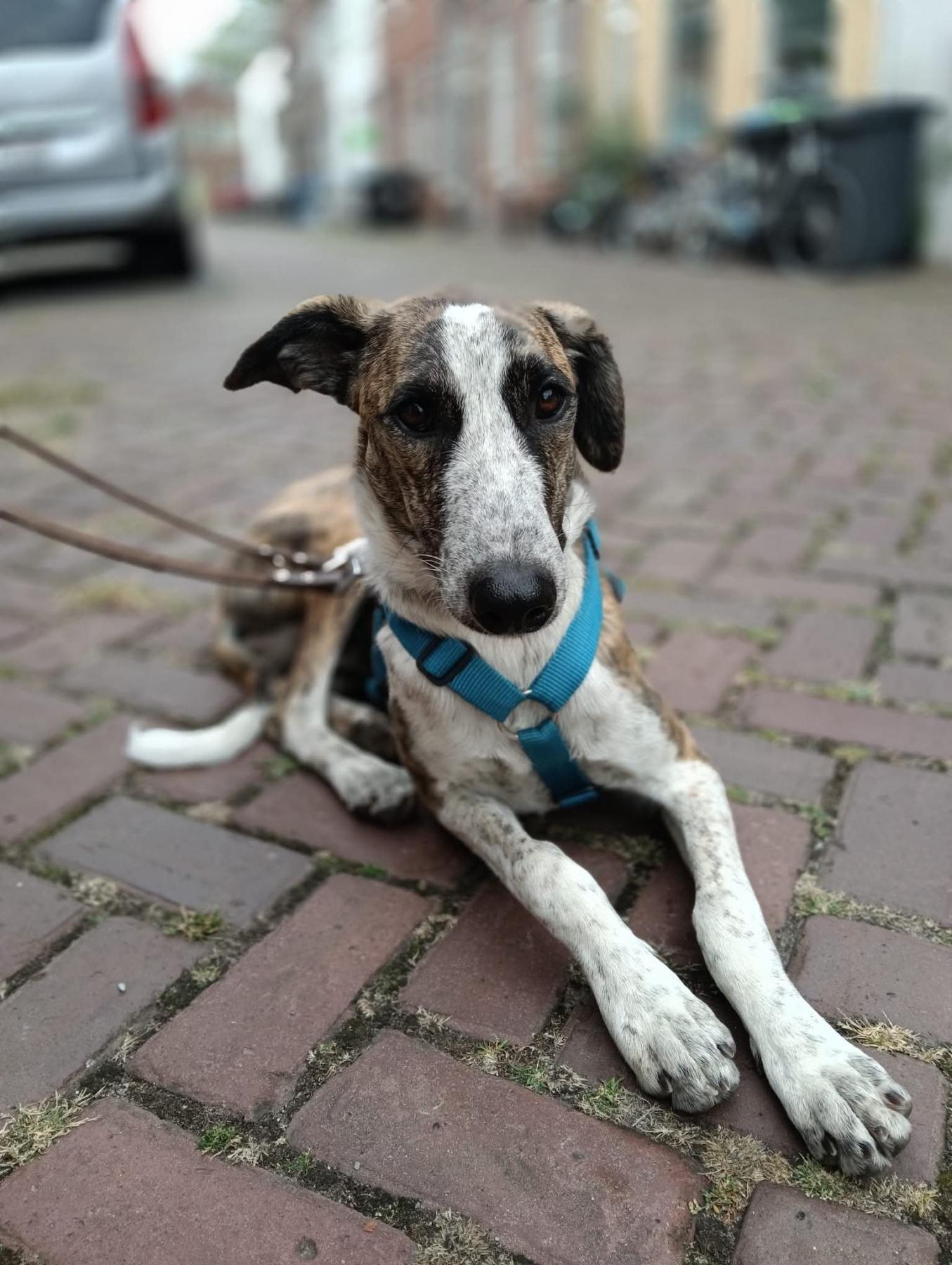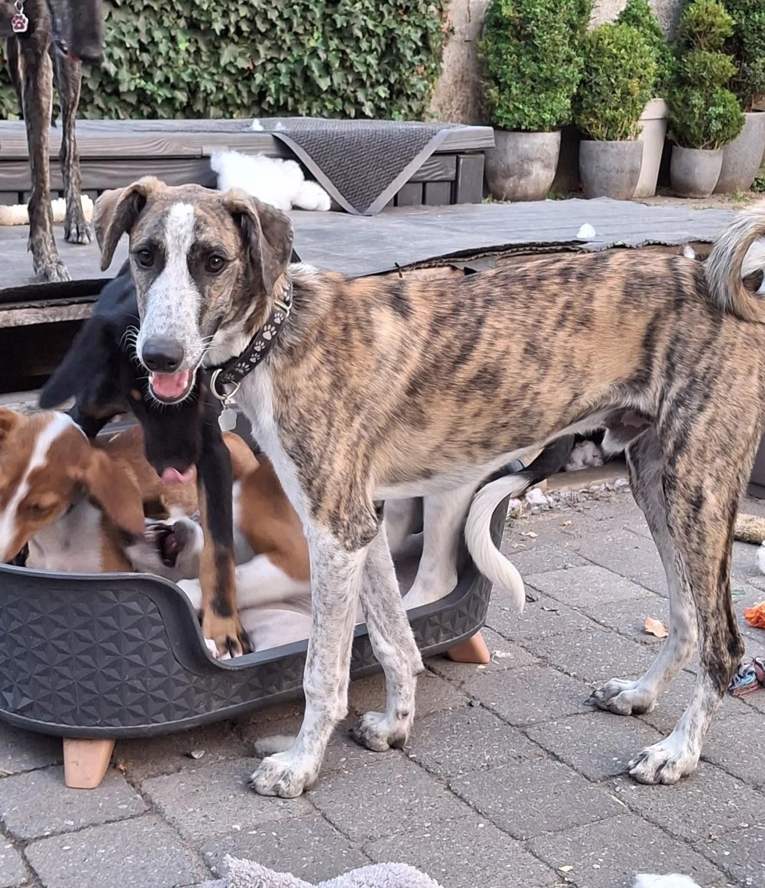Maak kennis met Greg, een prachtige Whippet–Saluki mix van 9 maanden.