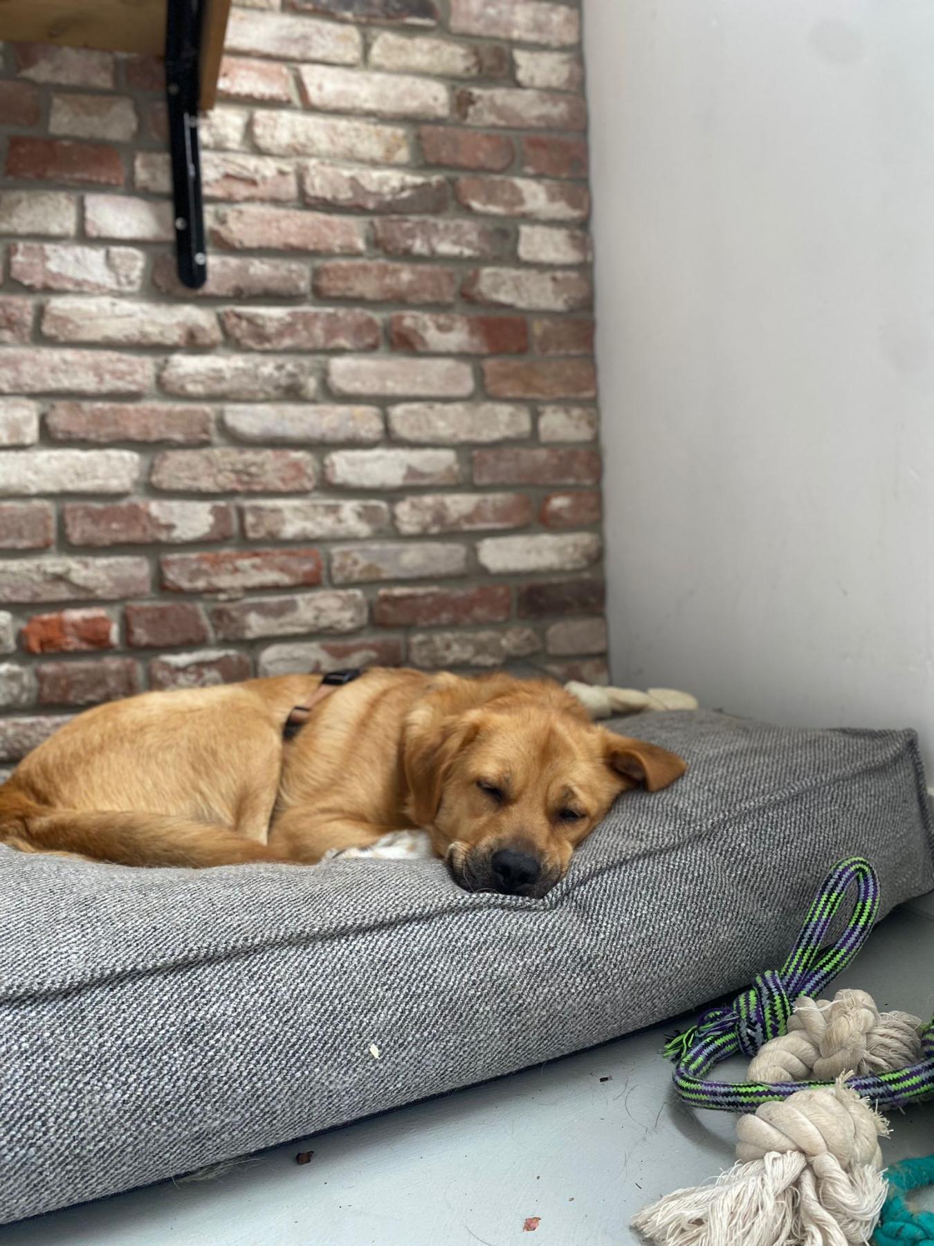 Guus houd enorm van het zonnetje! Je vindt hem dan ook uitgebreid genietend op van alles waar hij in de zon kan liggen!