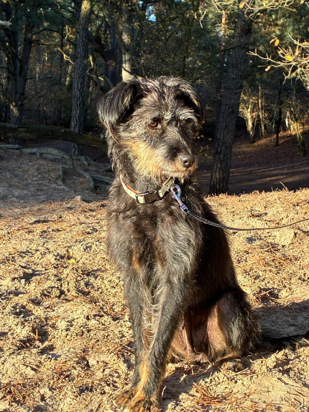 De eerste tijd was wandelen nog lastig voor Hazel. Ze begreep niet goed waarom of waarheen, en bleef soms stokstijf staan, alsof ze het nut niet zag. Maar zodra er een beloning kwam, begon haar staart voorzichtig te kwispelen. Met geduld en duidelijke begeleiding leerde ze stapje voor stapje dat wandelen ook fijn kan zijn — dat de lijn niet eng is, maar juist een teken van vertrouwen. En elke dag zie je haar een beetje meer ontspannen.