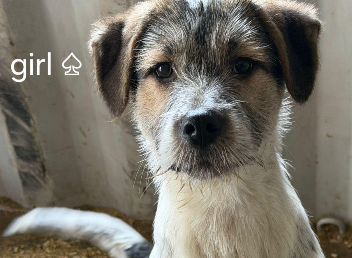 Janneke en haar zus komen uit een overvol asiel, zij hadden het geluk om naar nederland te komen in de hoop een fijne baas te vinden. Ze is 4 maanden, volledig geënt en zeer sociaal, half lange ruige vacht, en gek op knuffelen.