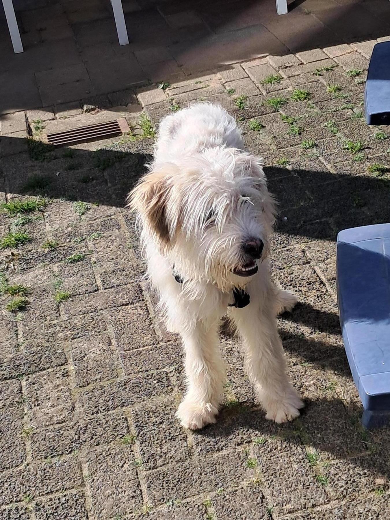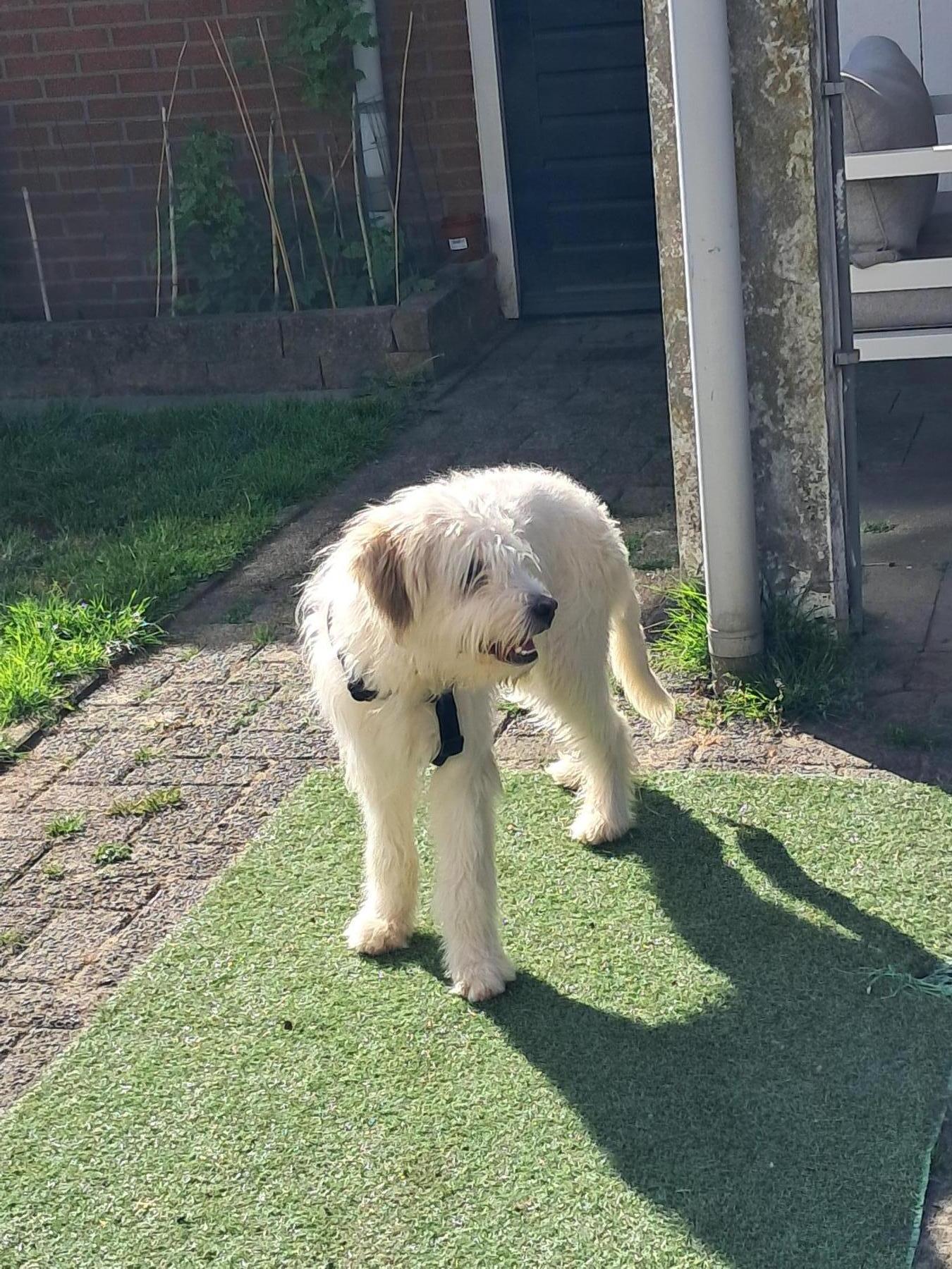 Jimmy is een hele zachtaardige pup van 5 maanden oud. Ze komt uit Roemenië, uit een prive opvang, maar gedraagt zich heel netjes in huis. Ze is zindelijk, lief voor andere honden en lief voor katten. Ze is heel rustig maar heeft af en toe een gekke bui, dan rent ze rondjes in de tuin en daagt de andere honden uit. Voor hem is een tuin een must.