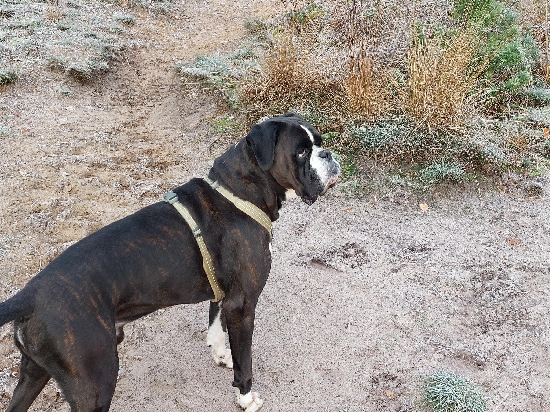 In de tuin vindt hij het heerlijk om op zijn rug in het gras te rollen, vooral als de zon schijnt of wat te spelen.