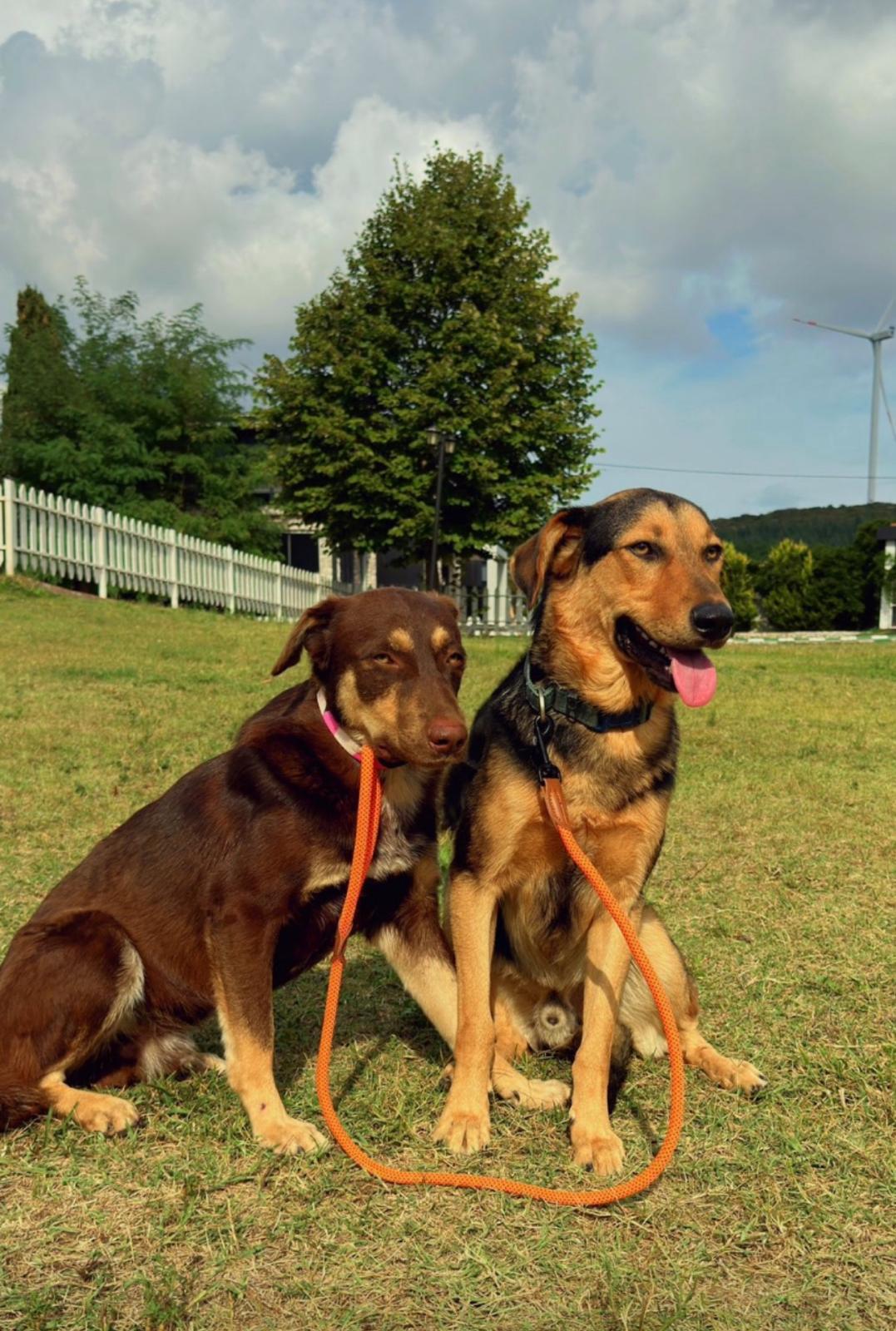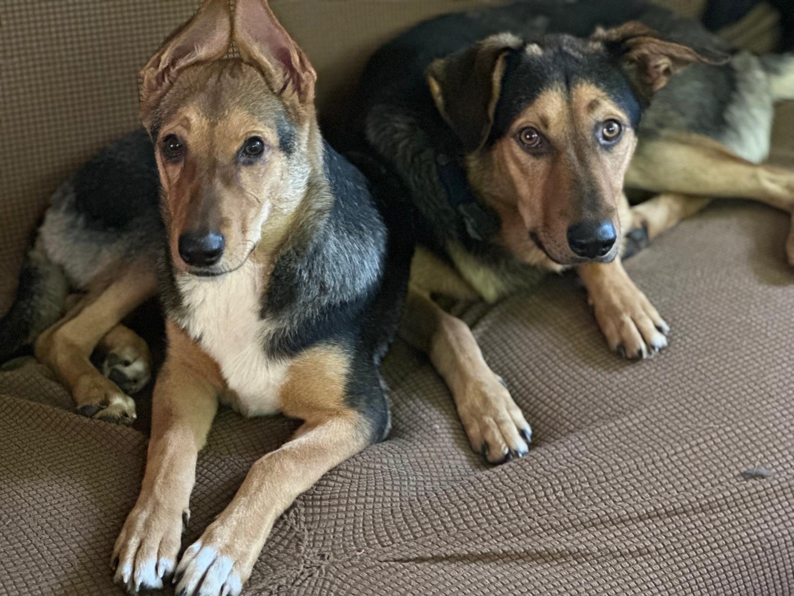 Een vriendin van ons heeft ze gevonden toen ze nog maar 3 maanden oud waren, ze bracht hun dagelijks eten en waakte over hen. Totdat het te gevaarlijk werd. Er werd gedreigd dat de pups gedumpt zouden worden in een ander stuk bos of afgevoerd naar de dodingsstations. Plekken waar ze het niet zouden overleven. Daarom heeft ze hun mee naar huis genomen om een fijn thuis te vinden voor deze kanjers.