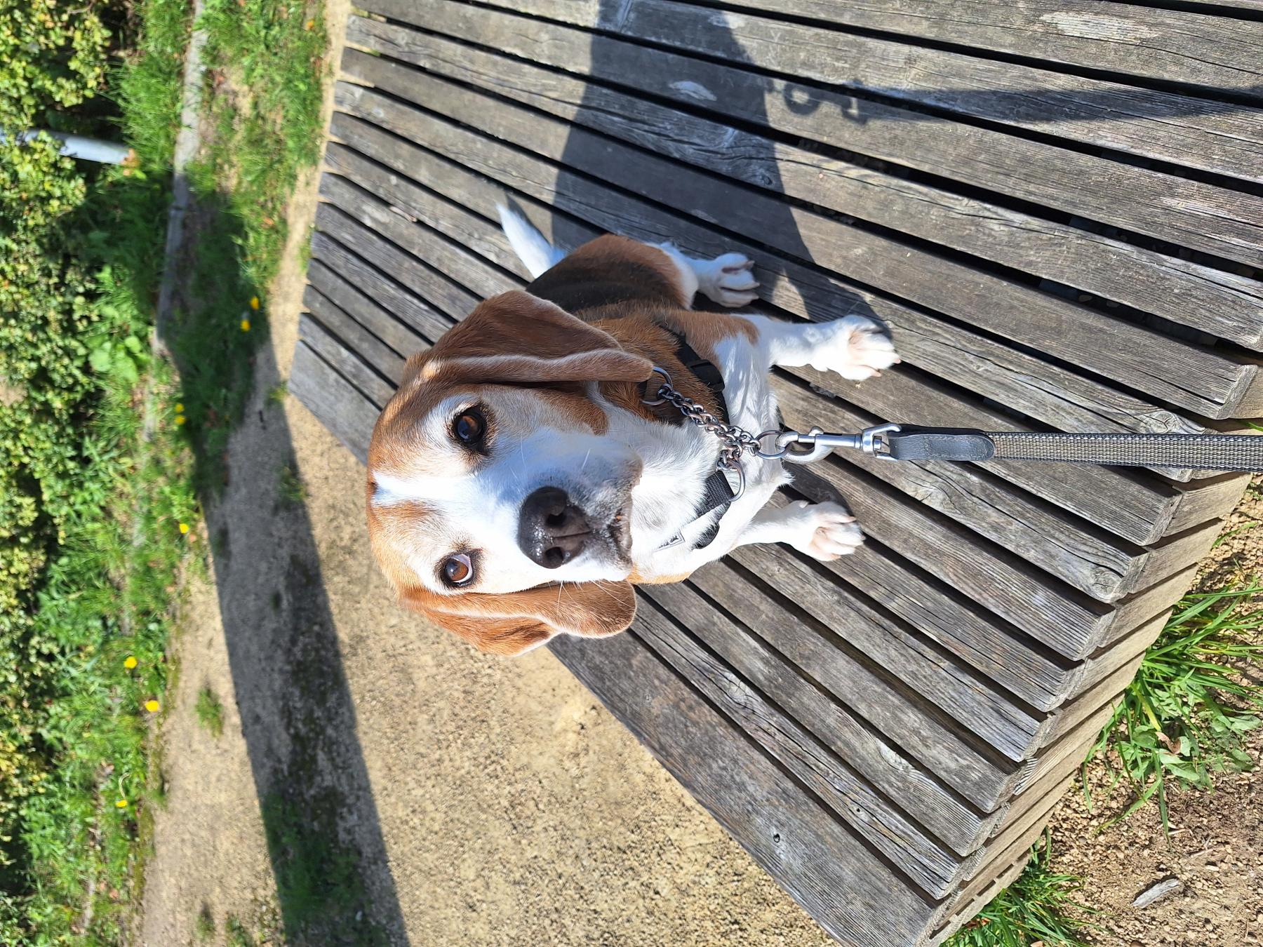 Joy is een lieve beagle met eigenwijze trekken. Ze kan dingen die ze pakt niet loslaten, wat wij erg lastig vinden ivm spelen/speelgoed kind.