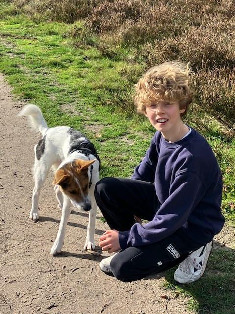 Een gedragsdeskundige bevestigde wat wij al aanvoelden: Kalou verveelt zich soms omdat hij zijn energie niet voldoende kwijt kan. Hij is een echte buitenhond die wil werken en zowel fysiek als mentaal uitgedaagd moet worden. In huis is hij waaks, wat indruk kan maken. Achter dat alerte gedrag zit een trouwe, sociale hond die graag onderdeel is van een roedel.