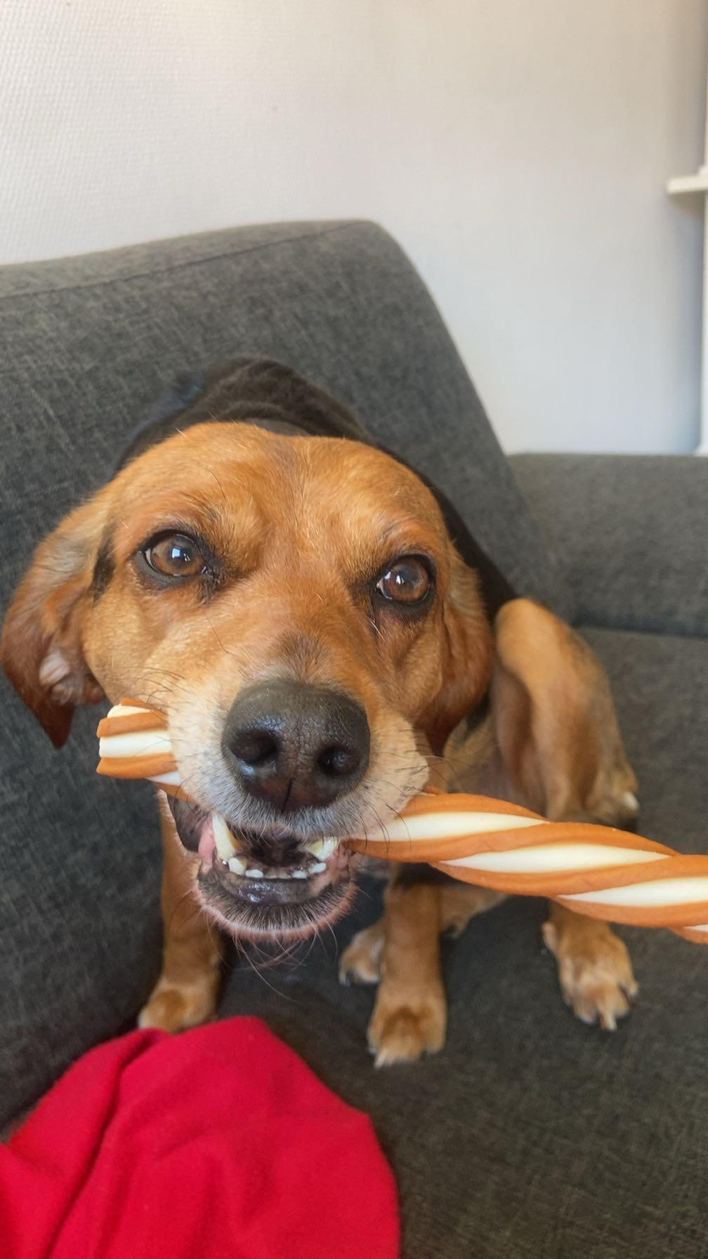 Kira is echt heel bang dus met uitlaten trekt ze best sterk aan de riem mijn moeder heeft n knie operatie gehad en vaak last van haar schouder dus dat is een te groot problee
