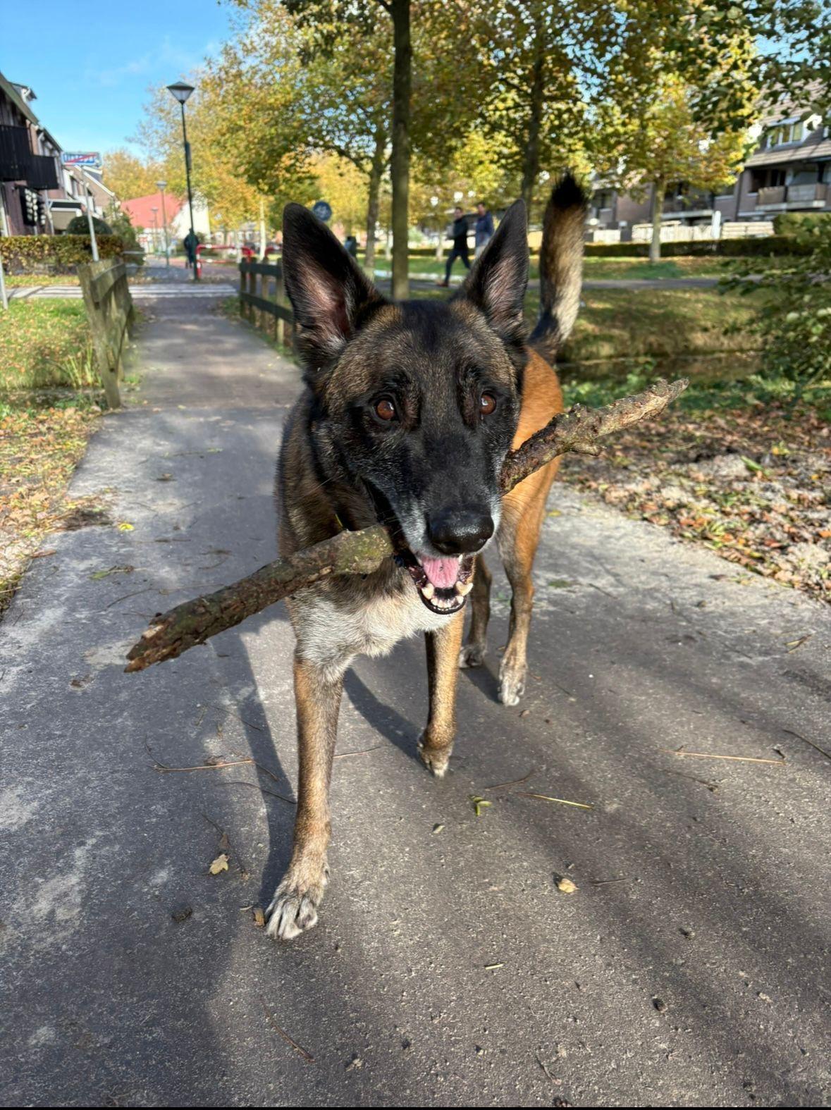 Zijn is waaks, hij zou goed passen op een boerderij waar hij lekker los kan lopen. Hij luistert heel goed. Het is geen knuffeldier