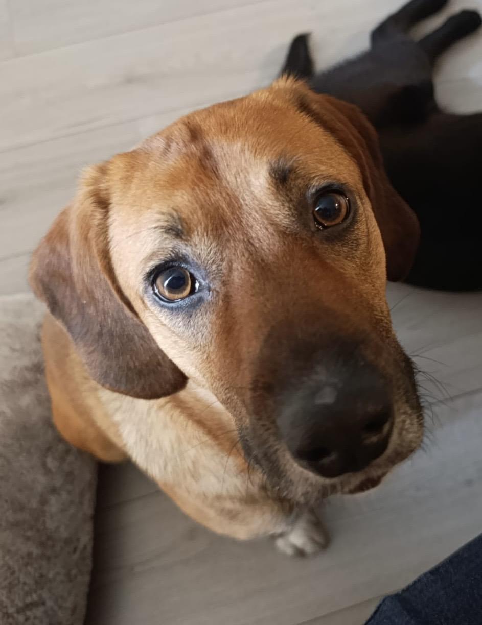Lara wil graag lekkere wandelingen gaan maken. Ze heeft het ook wel nodig haar energie kwijt te kunnen aangezien zij een jachthond kruising is.