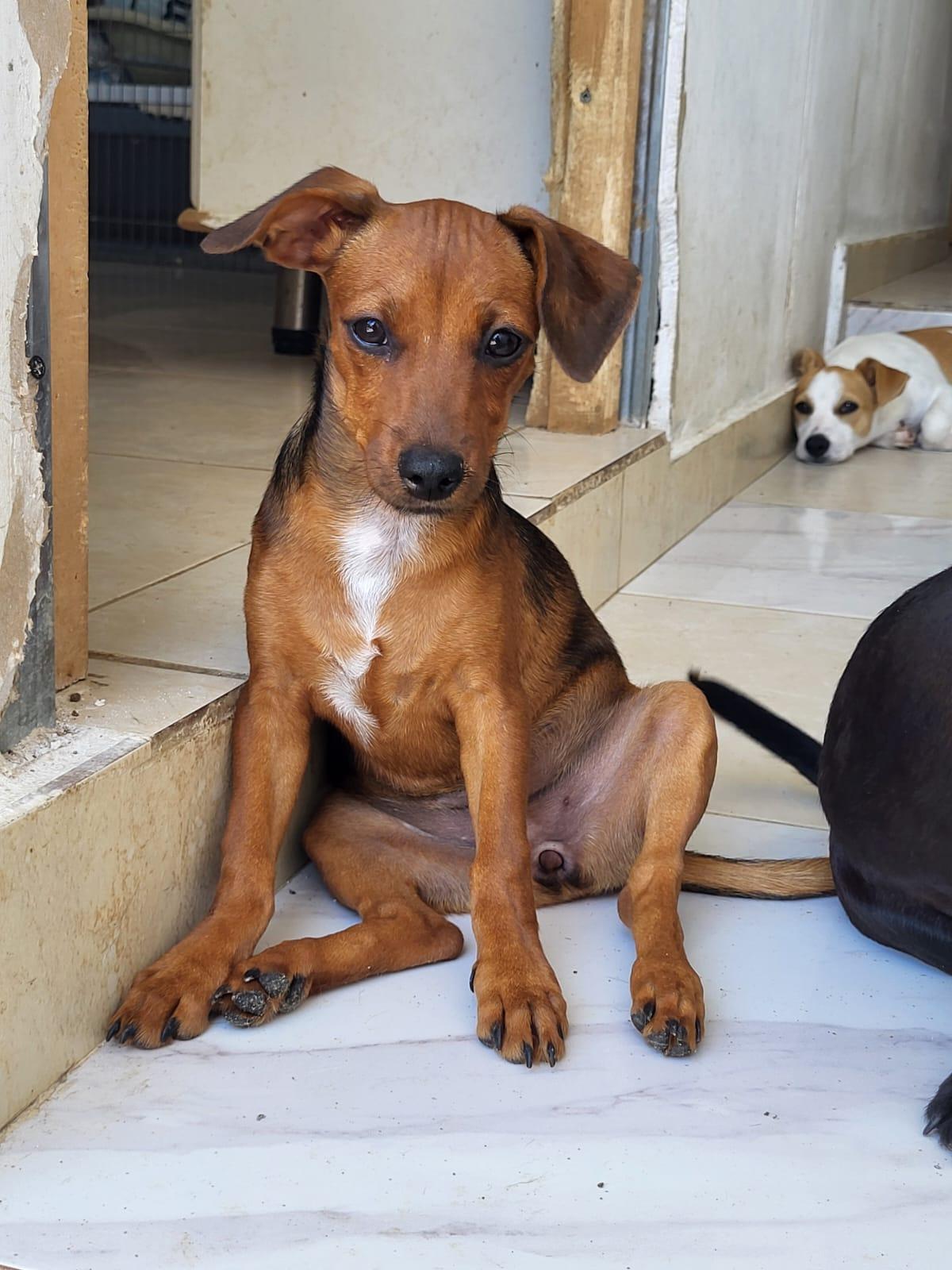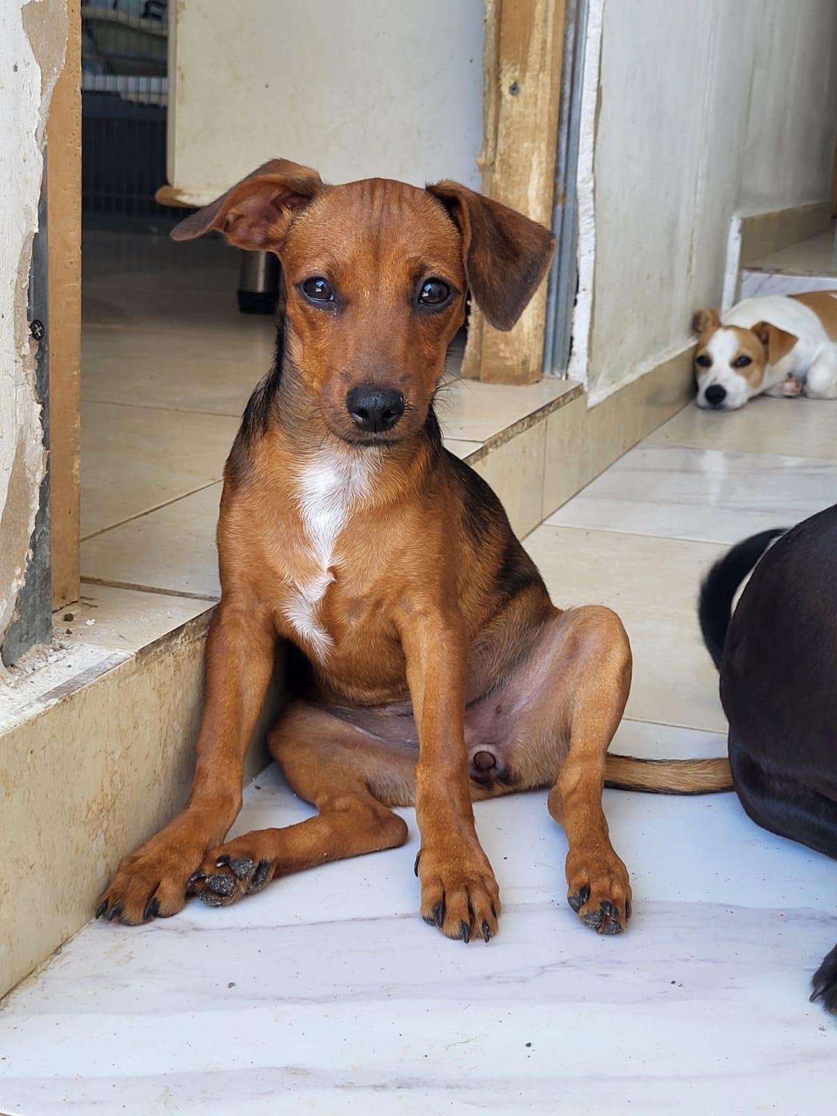 Lara is een van drie lieve broertjes en zusjes een vrolijke mix van Chihuahua en Pinscher, ongeveer 5 à 6 maanden jong. Lara weegt slechts 4, kilo.