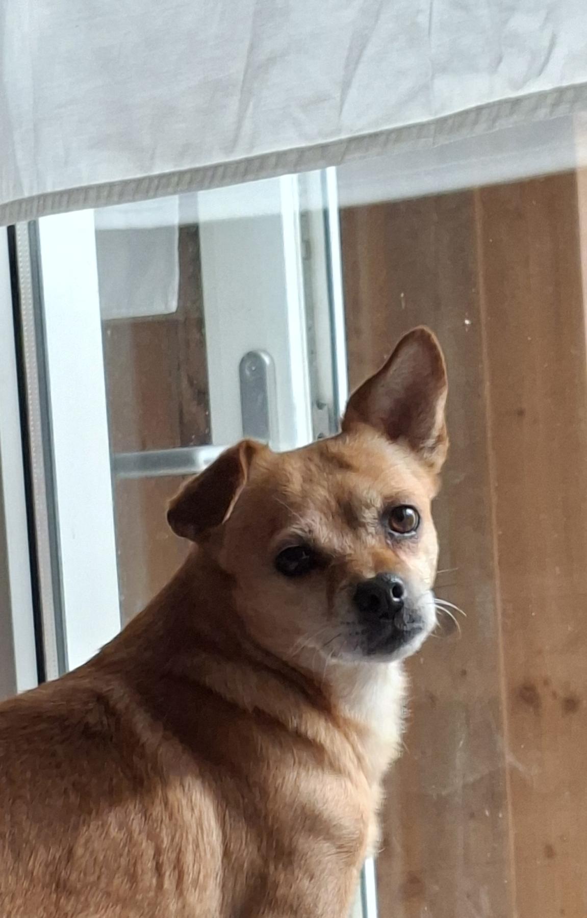 Lea is een kruising met chihauhua, en miss een buldog,-) lekker stevig lichaam en mooi koppie. Stoer hondje, ergens bang voor, op straat wil ze kennis maken met alle honden♡