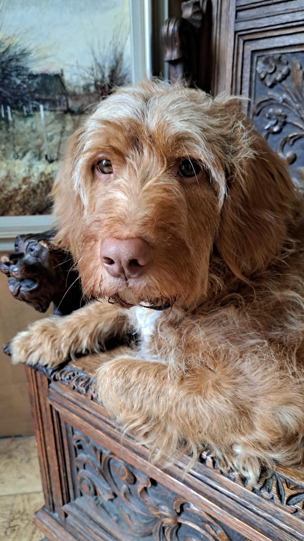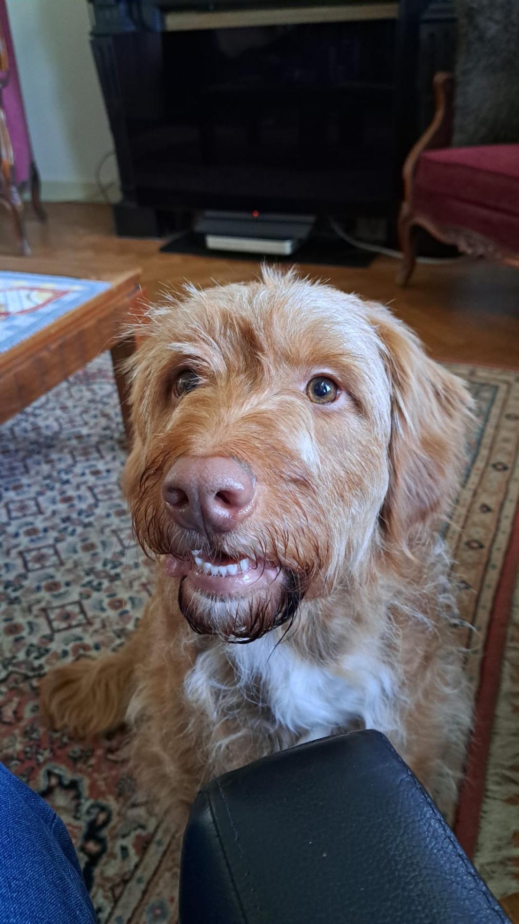 Hele lieve, nieuwsgierige en slimme hond die graag dicht bij je is. Ze heeft wat bagage; met gedragstherapie is nog mooie winst te behalen. Voorkeur voor een rustige, ervaren (vrouwelijke) baas. Kan met kinderen en andere honden omgaan. Ze kan goed alleen blijven in de bench en slaapt daar ‘s nachts ook in. Verhaart niet en houdt van knuffelen. Heeft wel voldoende ruimte en structuur nodig