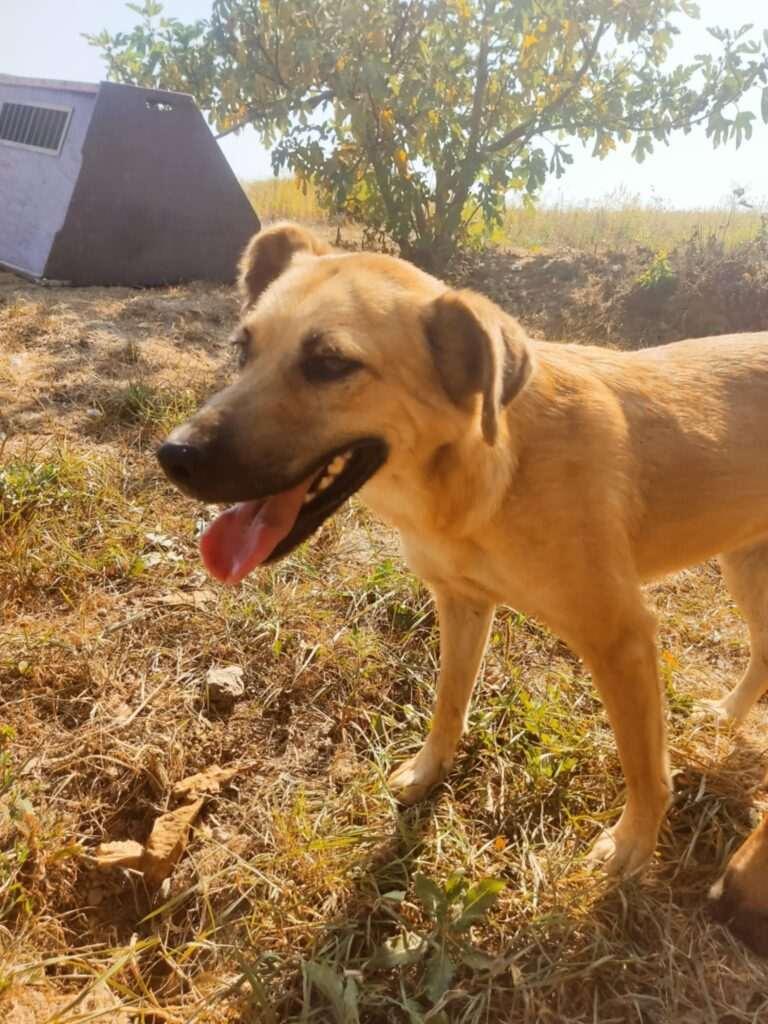 Ze werd door hondenvangers naar het asiel gebracht.