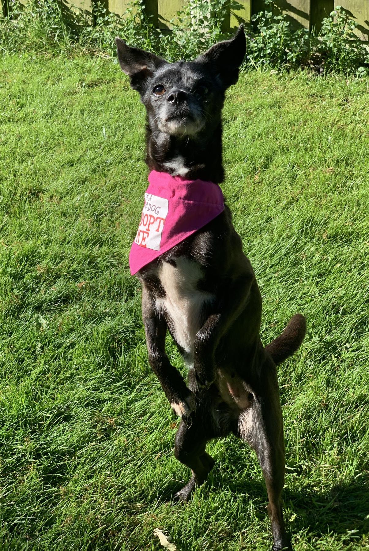 Lyske is een senior van 12 jaar oud, maar ze is kwiek en wandelt nog graag en loopt op rustige plekken los mee. Naar mensen, ook kinderen, sociaal en gezellig. Met 33cm en 5,5 kilo past ze prima op schoot. Voor meer informatie over Lyske en onze andere honden ter adoptie kijk hier