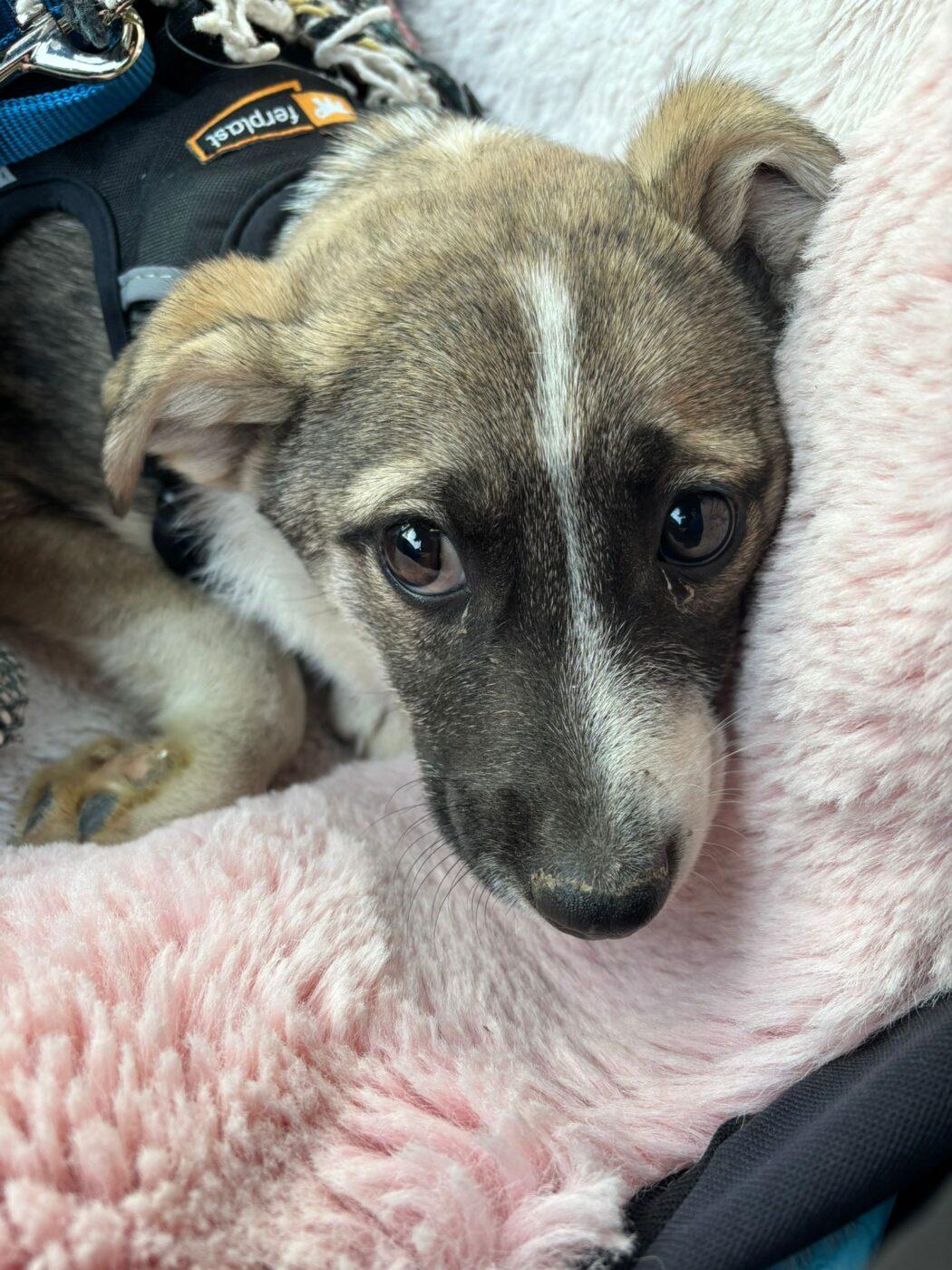Mac werd samen met zijn broertje gevonden aan de rand van een straat, waar hun moeder wanhopig probeerde eten te vinden om haar kleintjes in leven te houden. De pups zijn inmiddels veilig en krijgen de zorg die ze zo hard nodig hadden.
