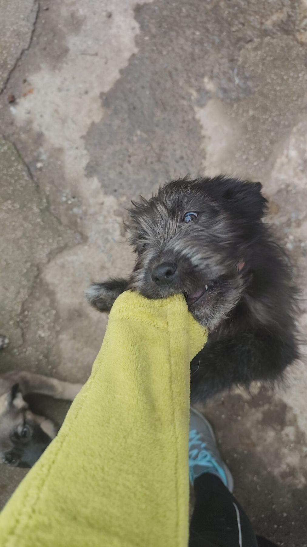 Hij speelt graag met zijn broertjes, maar zoekt ook vaak even contact om geknuffeld te worden.