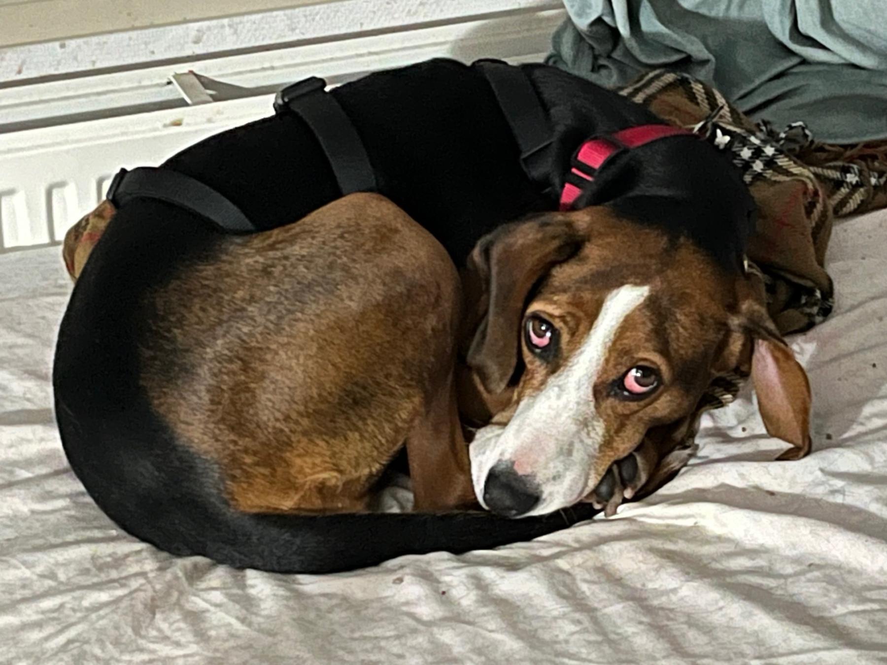 Mindi is een rustige, vriendelijke en sociale hond. Ze is dol op mensen en kijkt altijd of er ergens aandacht te krijgen is. Ze is een schat van een hond.