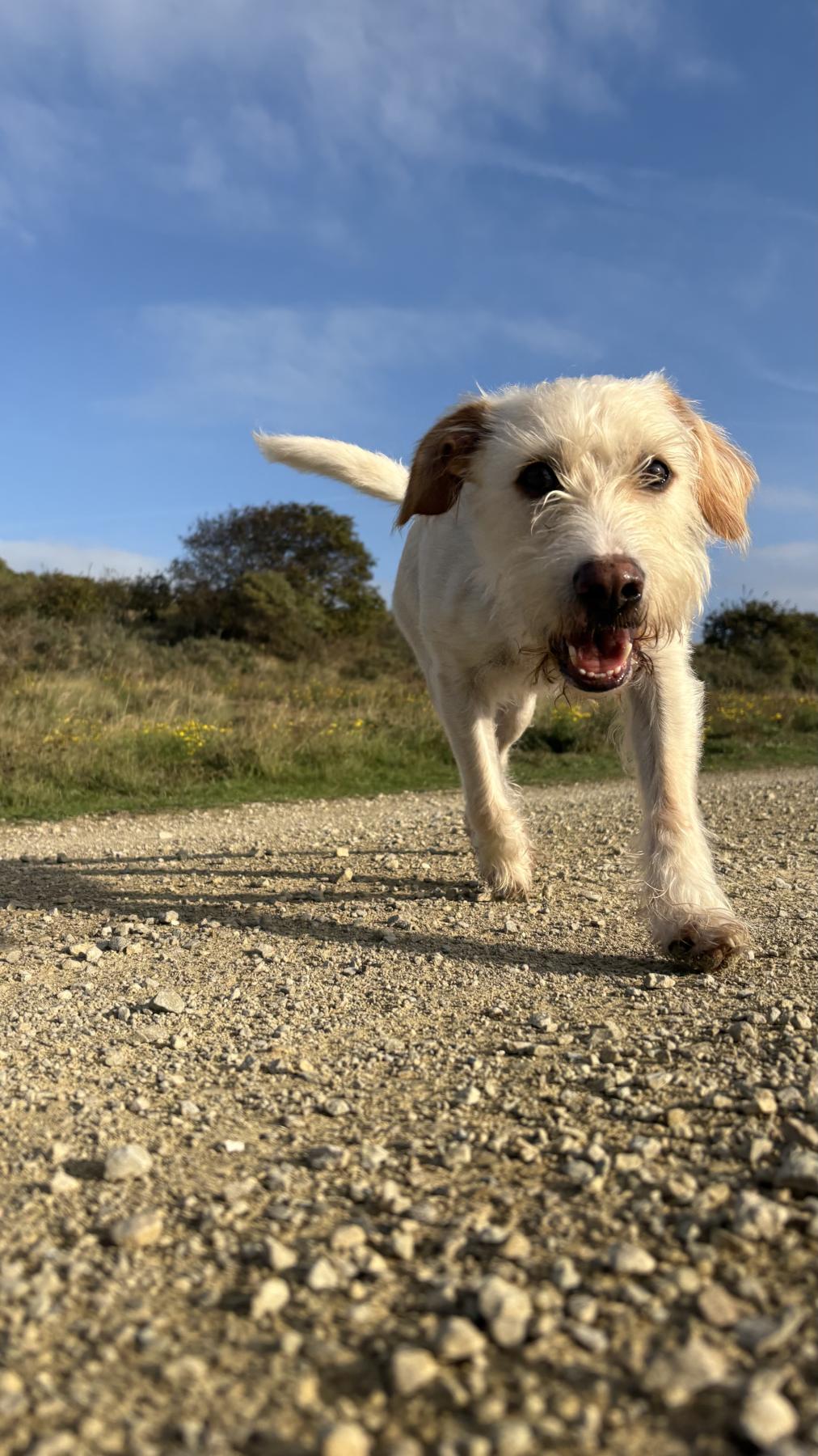 Buiten laat hij een andere kant zien. Dan is hij alert, nieuwsgierig en zichtbaar blij. Wandelen is voor hem meer dan bewegen: hij geniet van de omgeving, van samen op pad zijn en van het ontdekken. Die afwisseling tussen rust binnen en activiteit buiten maakt hem zo’n fijne hond om mee te leven.