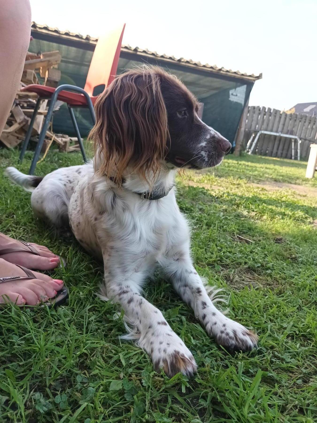 Het is een echte springer, heel bewegelijk. Houd van lekker rennen en schaduwen jagen. Ze is los in het open veld helemaal in haar element. Vind het heerlijk om geaaid te worden en houd van gezelschap.