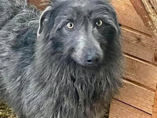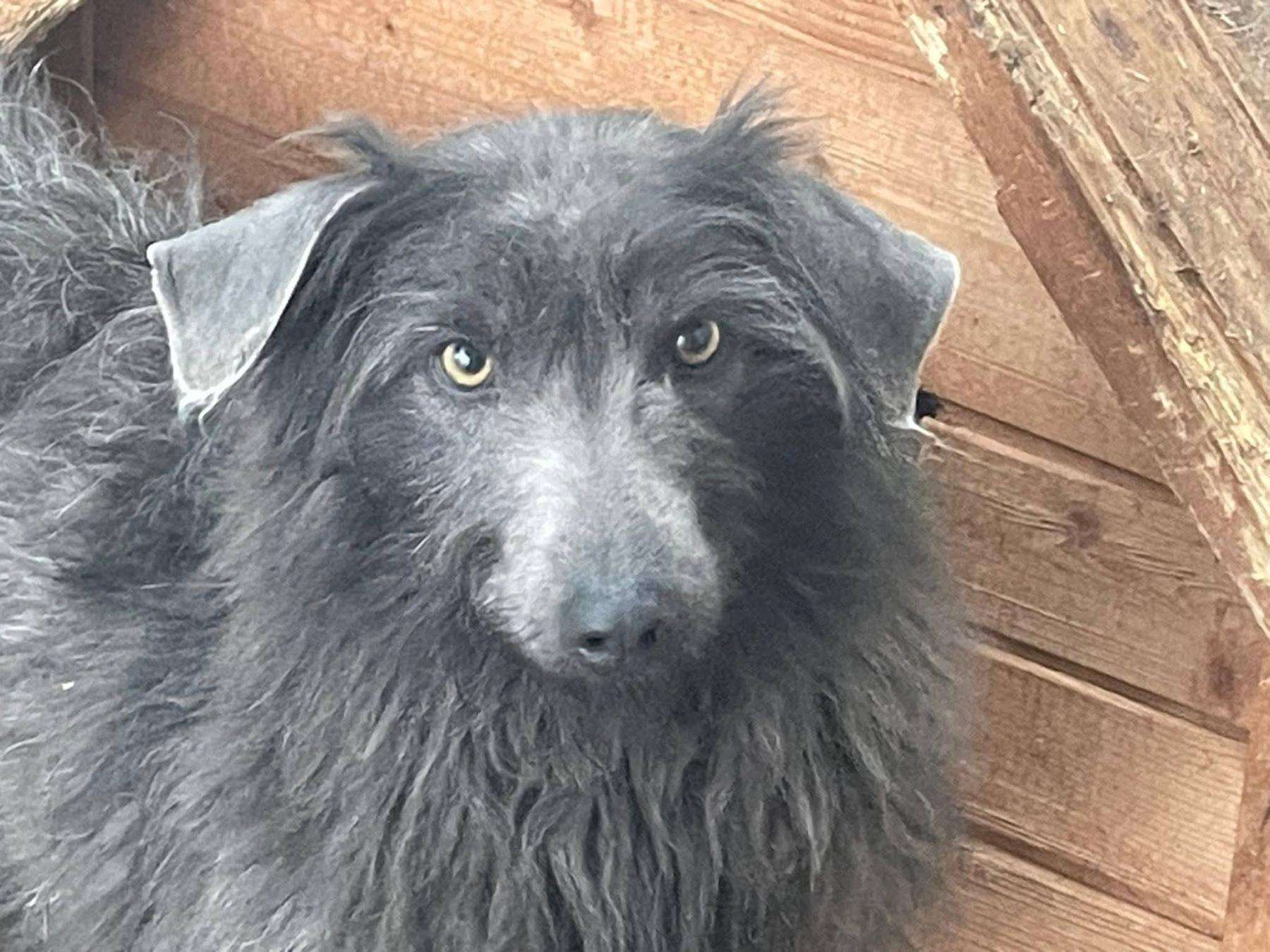 Grijze, halflange vacht die haar een unieke uitstraling geeft.